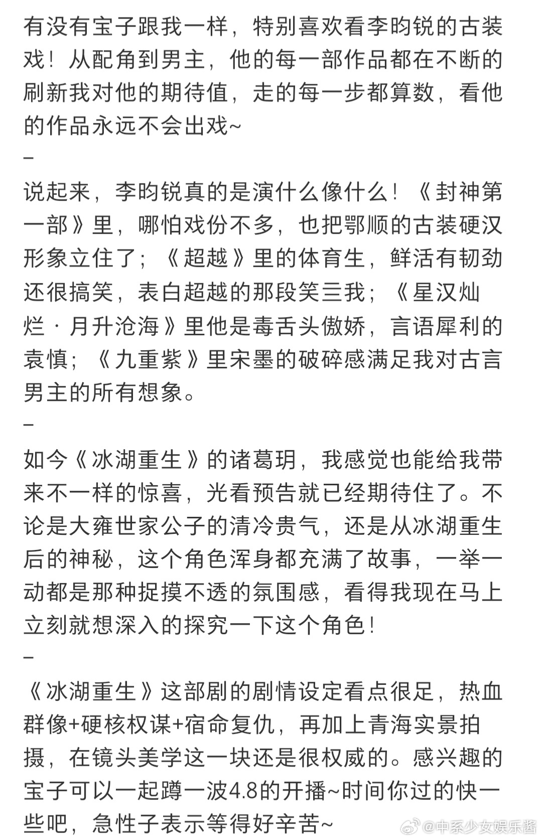 李昀锐要播新剧了,我敢说他这次肯定不愿意炒cp,看看这剧女主就知道了。《冰湖