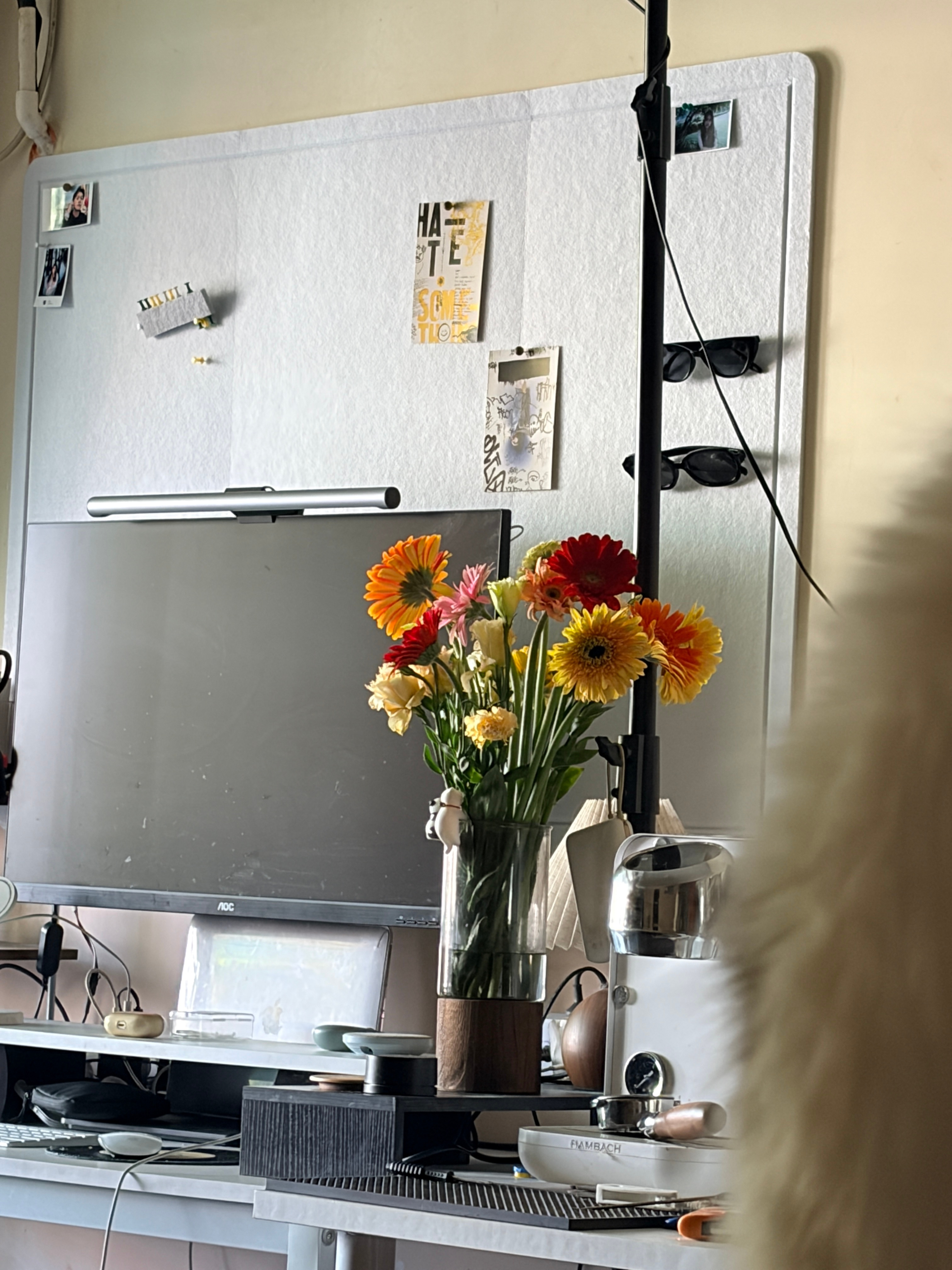 它说它想跟花合照一张,拍完第一张它说它怎么只有花?然后跑到了花旁边又要求我拍了一