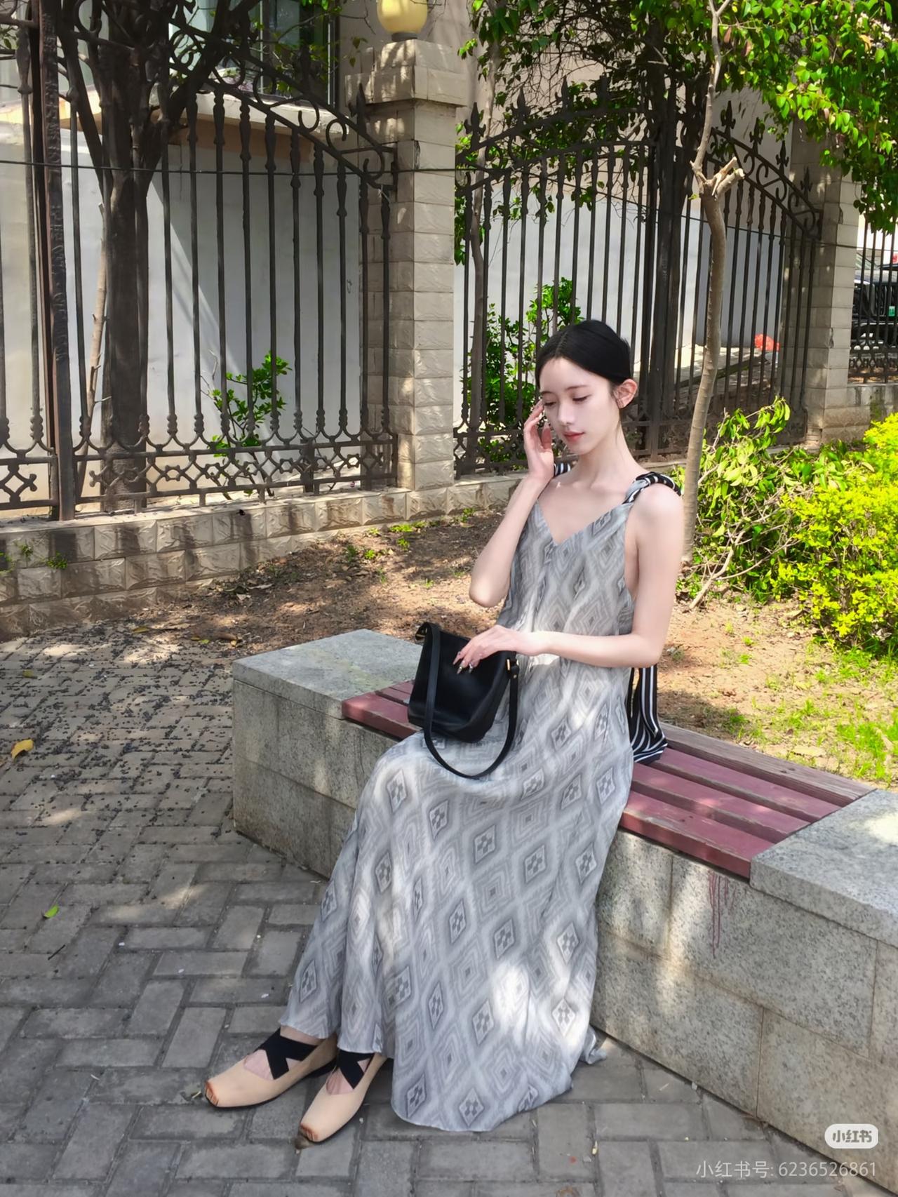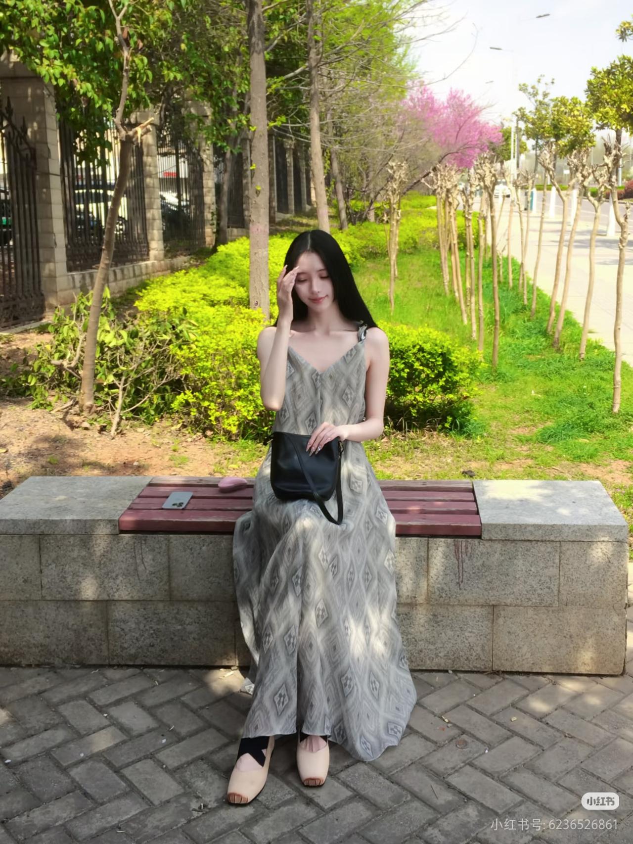 绿树阴中倚石坐,轻纱拂面笑春风。