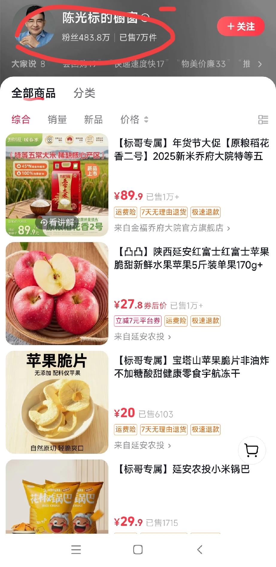 打开陈光标标哥的抖音账号,不看不知道,一看着实令人惊讶。标哥的头衔多达20多个,这怕是都能载入吉尼斯纪录了,要是印在一张名片上,估计都写不下。其中,最引人瞩目的当属“中国首善”这一头衔,想来这或许也是标哥最为珍视的一个。 没想到标哥这样的大企业家也在抖音上带货,大约售出了七八万单,销量还挺不错。卖得好的商品有苹果、大米等。 也许彪哥带货赚点钱,可能都捐出去了。请问你们有没有在标哥的直播间买过他的东西呢?