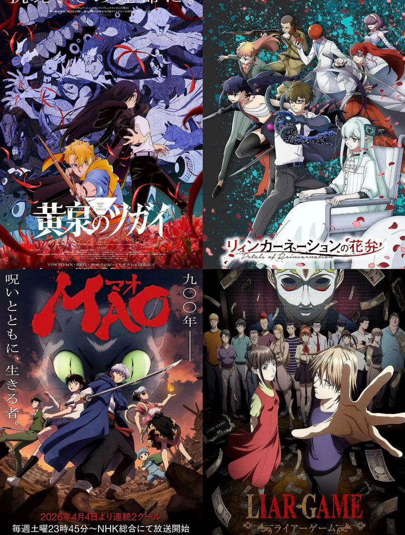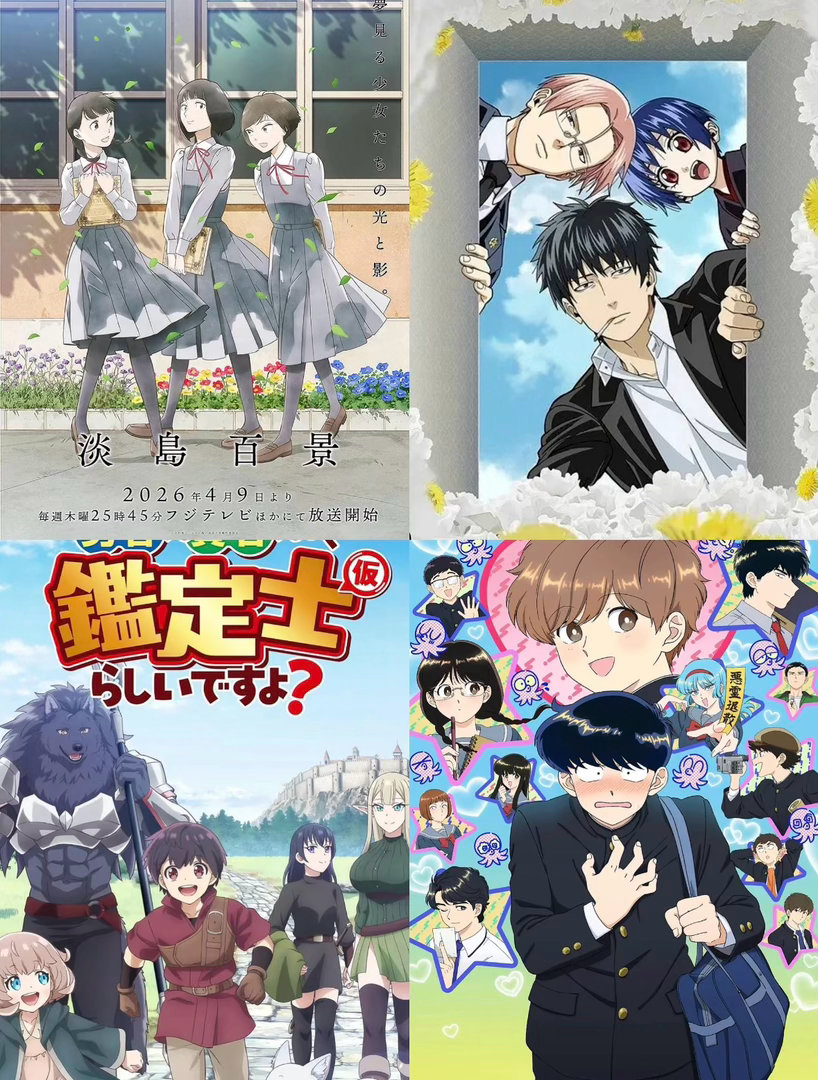 火速码住,四月新番看这篇就够了!👀2026年4月新番堪称“神仙打架”,整理了34部超详细的播出时间表,码住慢慢看吧!动漫点评团新番冰之城墙 2026.4.2雾尾粉丝俱乐部 2026.4.3库兹马唱歌的话家里哆啰啰 2026.4.9春夏秋冬代行者 春之舞 2026.3.29和班上第二个可爱的女孩子成为了朋友 2026.4.7想结束这场“我爱你”的游戏 2026.4灰原君的青春二周目 2026.4.3尖帽子的魔法工坊 2026.4.6公主骑士是蛮族的新娘 2026.4.9冻结地球 2026.4.3黑猫与魔女的课堂 2026.4.12婚姻剧毒 2026.4.7杀手青春 2026.4.11废柴风纪律委员与裙子长度不合规的JK的故事2026.4.6朱因落语 2026.4.4日本三国 2026.4.5幽灵音乐会:遗失的歌曲 2026.4.5你又被杀了呢,侦探大人 2026.4神之水滴 2026.4.10拜托了偶像公主 2026.4.5魔法姐姐露露与莉莉 2026.4.5主播女孩重度依赖 2026.4.5黄泉的使者 2026.4.4轮回的花瓣 2026.4.2摩绪 2026.4.4欺诈游戏 2026.4.7关于虽然逃走的鱼很大、但钓上来的鱼却太大了这件事 2026.4.1自称恶役大小姐的婚约者观察记录 2026.4.6楠木邸的神明庭院 2026.4.6女神“异世界转生想成为什么”我“勇者的肋骨”2026.4.7淡岛百景 2026.4.9蒲公英 2026.4.16最强的职业不是勇者也不是贤者好像是鉴定士(伪)的样子?2026.4.1加油吧!中村君!2026.4.2