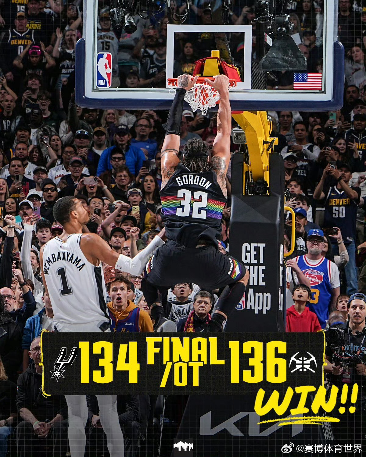 掘金终结马刺十一连胜马刺vs掘金 西部焦点战!掘金主场历经加时以136-136两分险胜马刺,终结对手11连胜,同时拿下8连胜。约基奇全场砍下40分8篮板13助攻3盖帽,成为NBA历史首位40+10助且0失误的中锋。布劳恩贡献21分8篮板,穆雷15分10助攻,戈登15分6篮板。