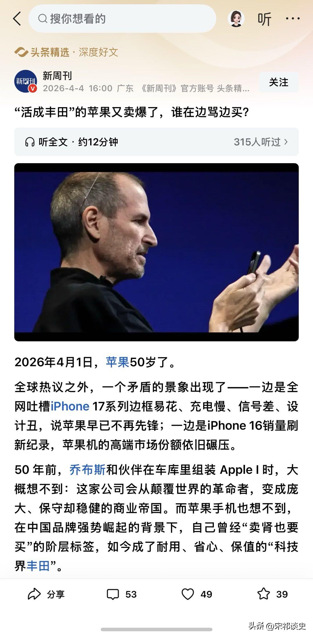 苹果沦为“科技界丰田”?中国人疯狂吐槽不思进取,为什么还在买? 近日,苹果迎来5