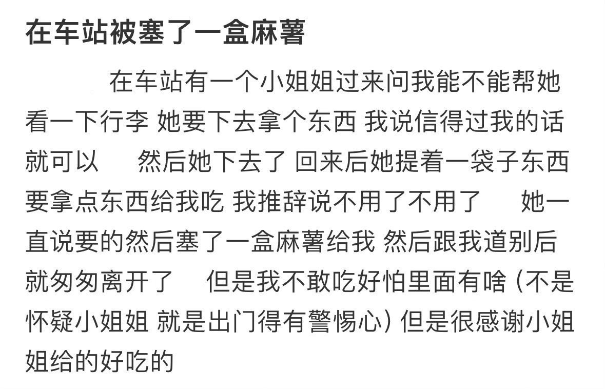 在车站被塞了一盒麻薯