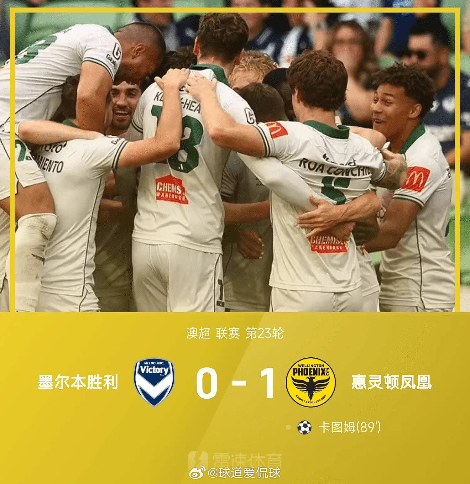 04月05日讯 25/26赛季澳超联赛第23轮,惠灵顿凤凰1-0战胜墨尔本胜利。上半场比赛,埃斯波西托伤退,双方均无建树。下半场易边再战,卡图姆替补登场后接埃泽传中凌空抽射破门,帮助惠灵顿凤凰取得三连胜。足球足球澳超
