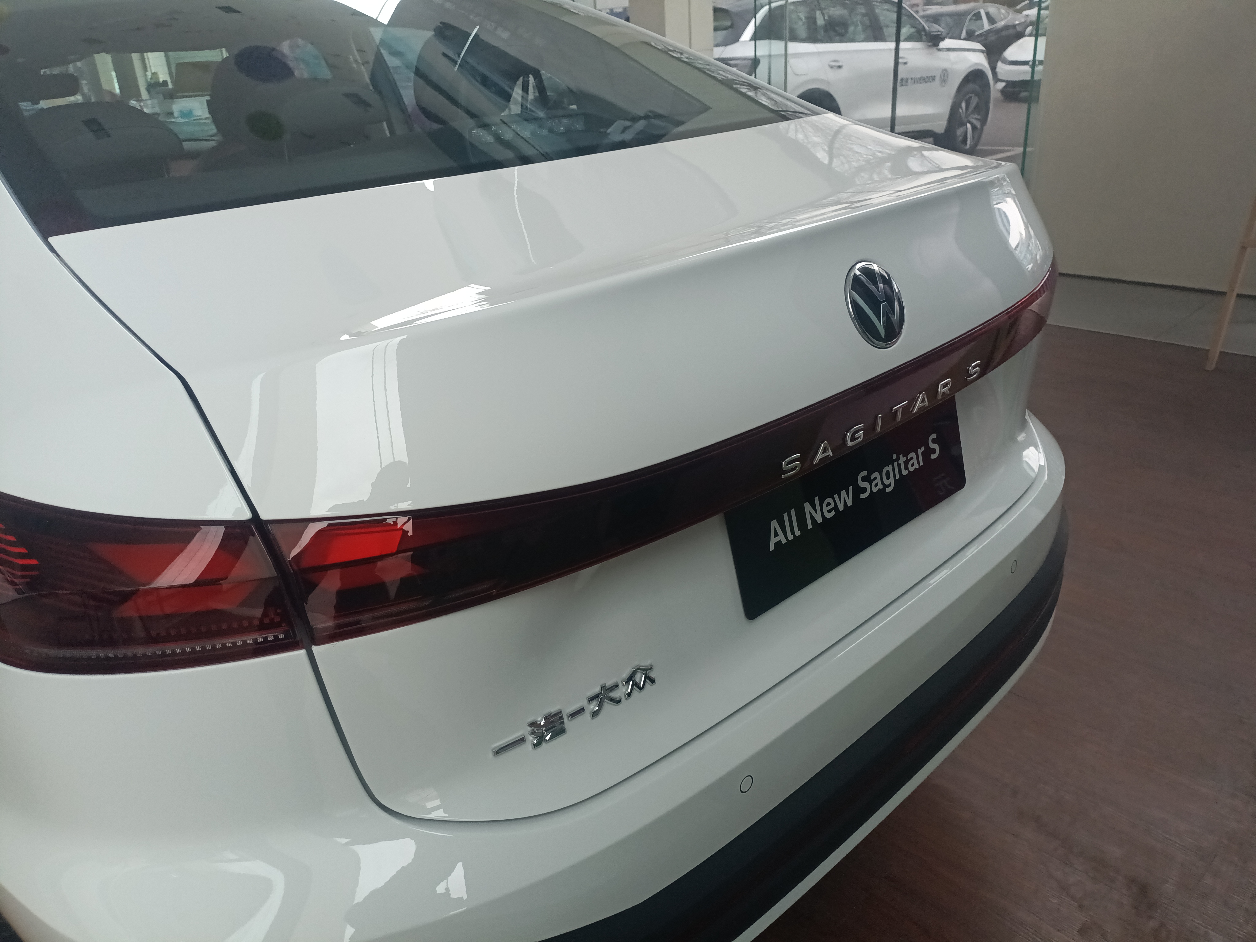 车子从外观看上去还是非常的漂亮,销售给我介绍说车头部分采用扁平化布局,车身溜背设计,尾灯为贯穿式,前后车标均具备发光功能,轮毂采用17英寸配置。去年去大众4S店看车的时候我就非常想要买一款价格合适前后车标可以发光且带贯穿尾灯的大众车,可惜没买到,今年这款速腾S从外观方面完整征服了我。