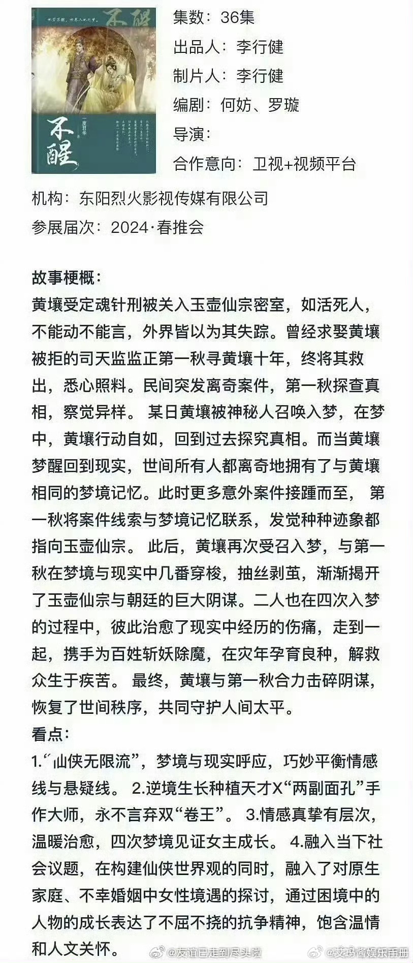 🍉网传👖《不醒》阵容暂定:陈都灵 侯明昊 徐振轩,预计Q3开机,你期待吗?