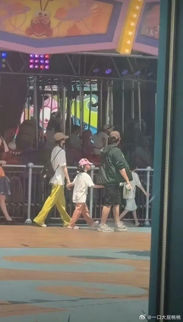 43岁唐嫣和老公罗晋带5岁女儿现身新加坡环球影城,夫妻俩牵着女儿的手,看起来好幸