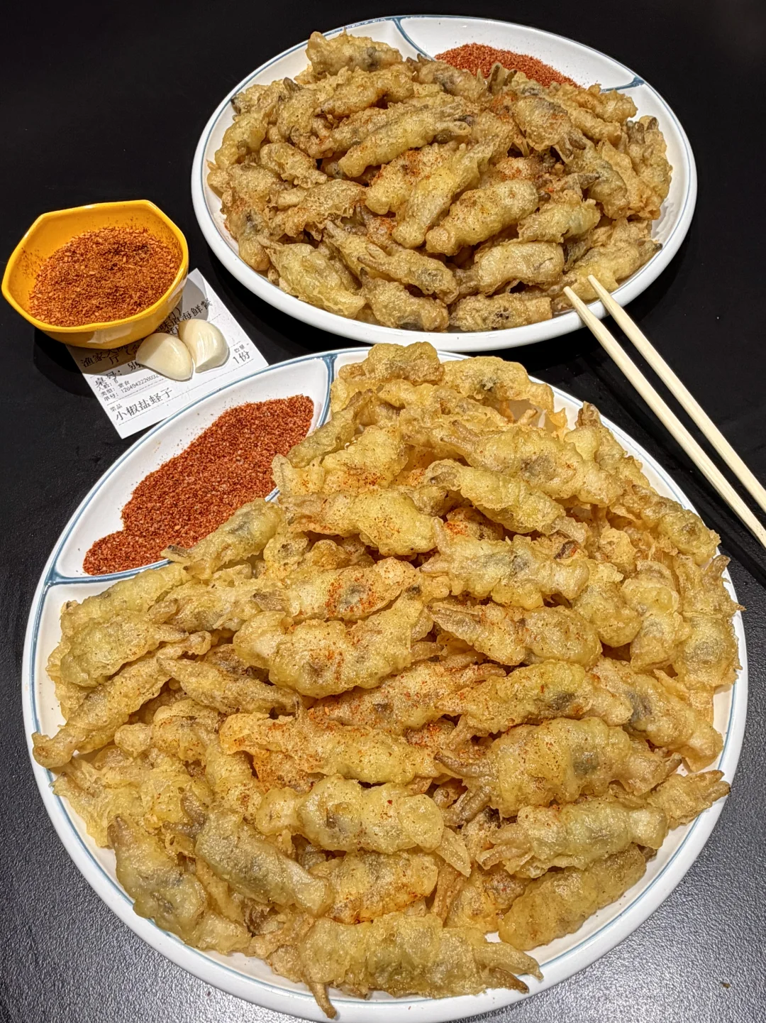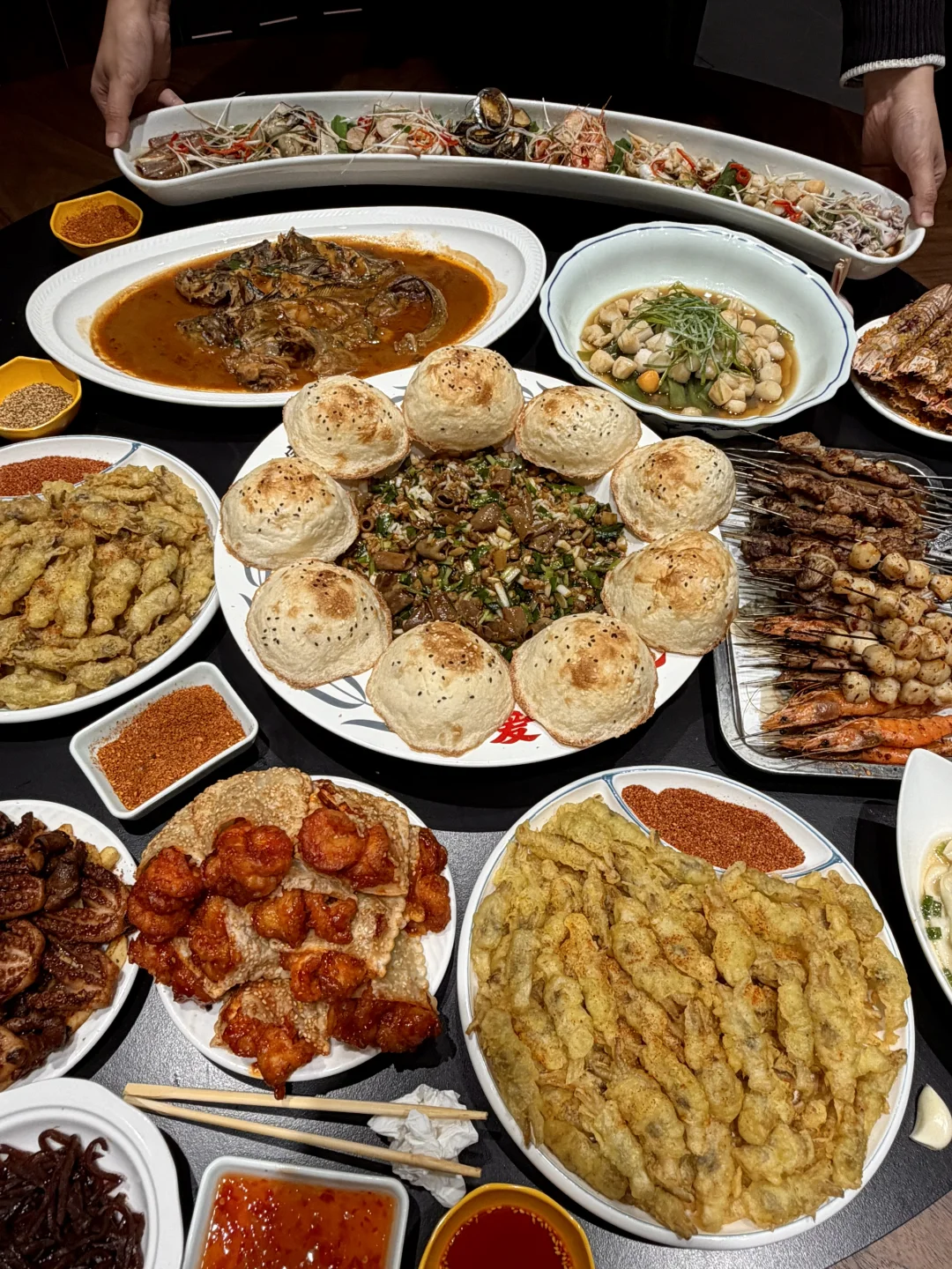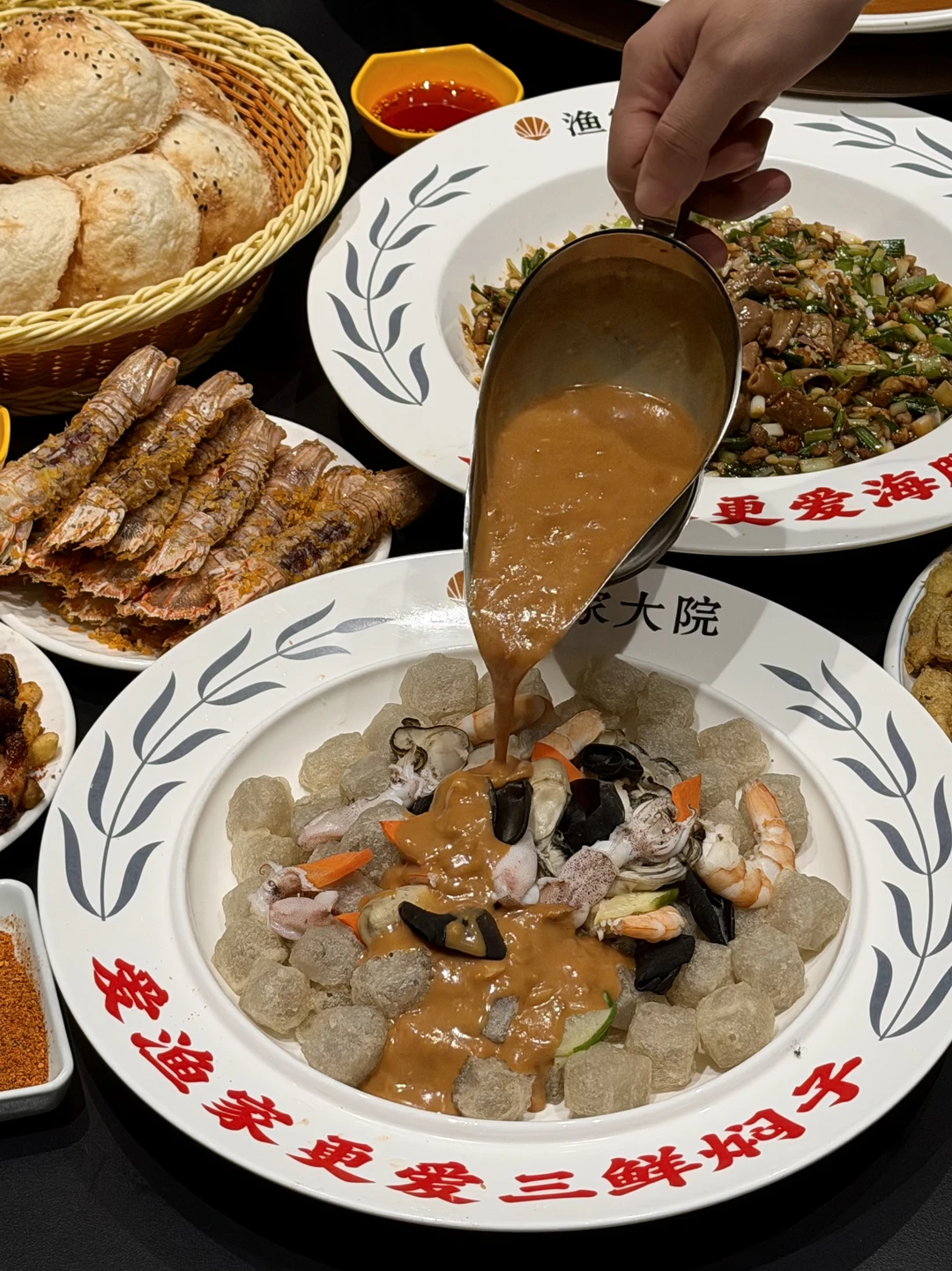 本地朋友带我们去吃的!! 逛完烟台山直奔这里!饭点去坐满了人🥹 - ✔️蟹脚 蟹脚里面是满满蟹肉🦀一口一个根本停不下来!! ✔️小椒盐蛏子 肥嘟嘟蛏子炸得金黄酥脆!搭配辣椒面一整个香晕🥹 ✔️海肠捞饭 终于吃上了正宗的海肠捞饭!脆脆的海肠搭配浓郁捞饭~一口气炫完一整碗🤤!!! 📍渔家大院•烟台菜•本土海鲜(念慈别墅店)