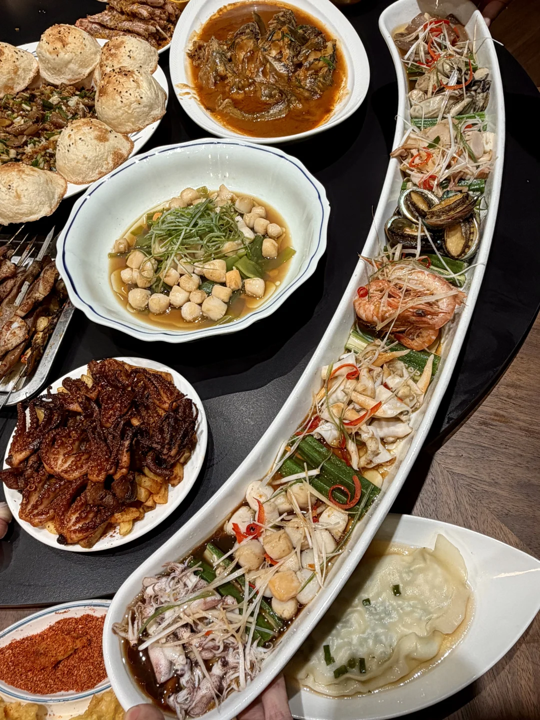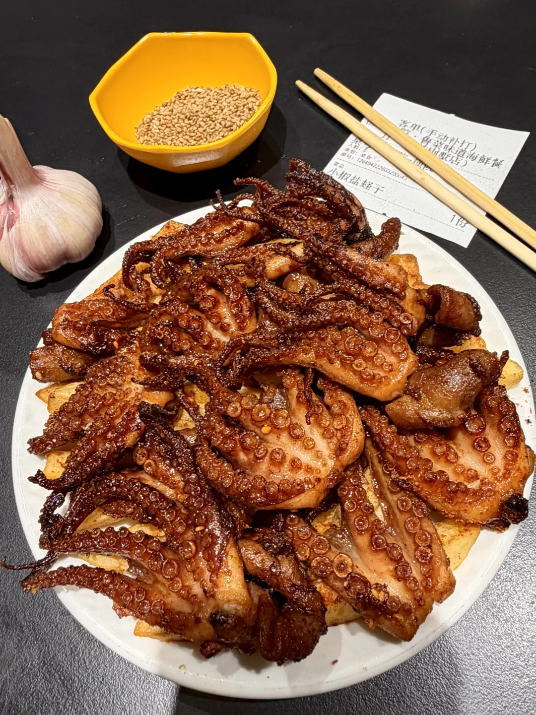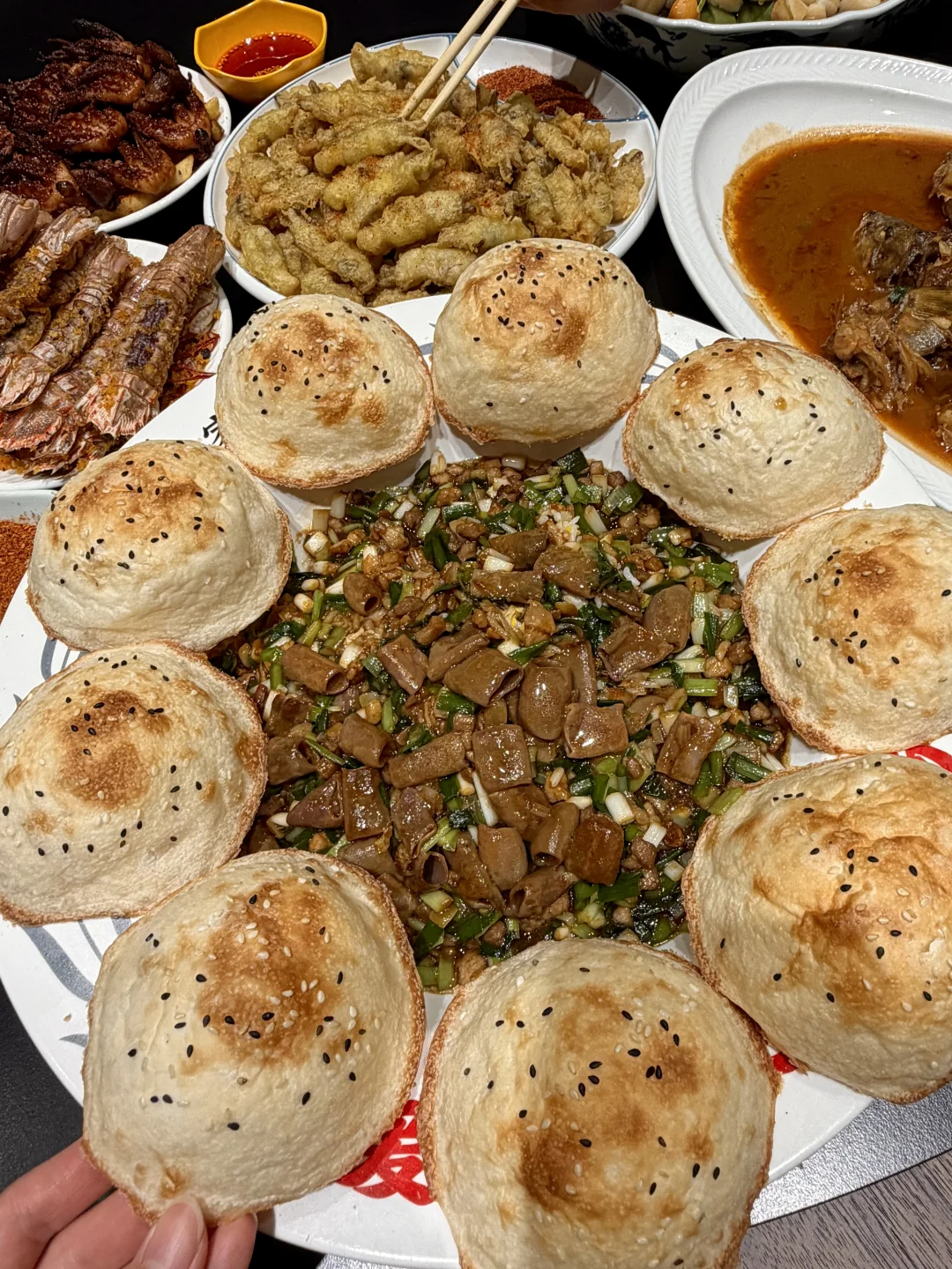 本地朋友带我们去吃的!! 逛完烟台山直奔这里!饭点去坐满了人🥹 - ✔️蟹脚 蟹脚里面是满满蟹肉🦀一口一个根本停不下来!! ✔️小椒盐蛏子 肥嘟嘟蛏子炸得金黄酥脆!搭配辣椒面一整个香晕🥹 ✔️海肠捞饭 终于吃上了正宗的海肠捞饭!脆脆的海肠搭配浓郁捞饭~一口气炫完一整碗🤤!!! 📍渔家大院•烟台菜•本土海鲜(念慈别墅店)