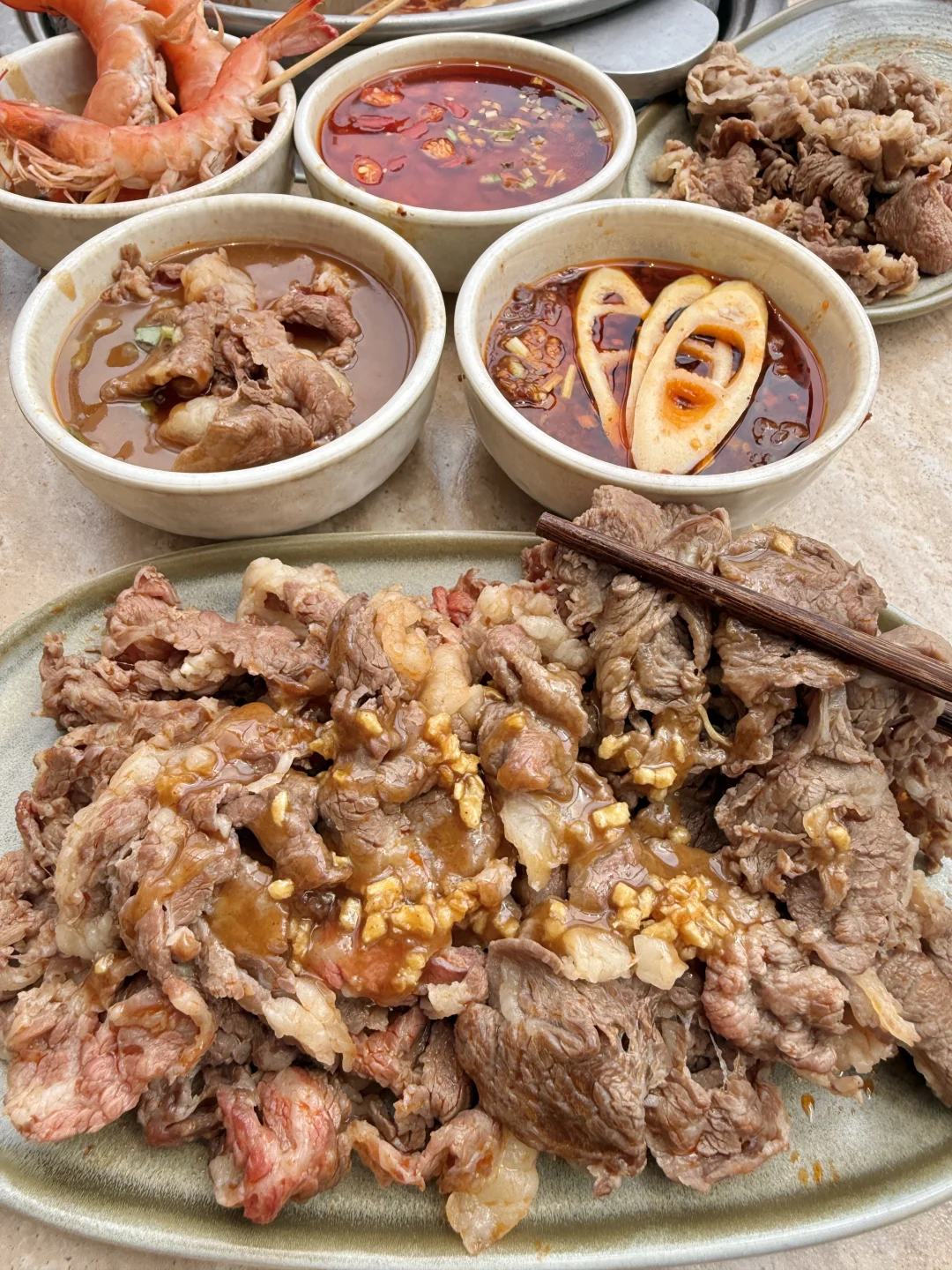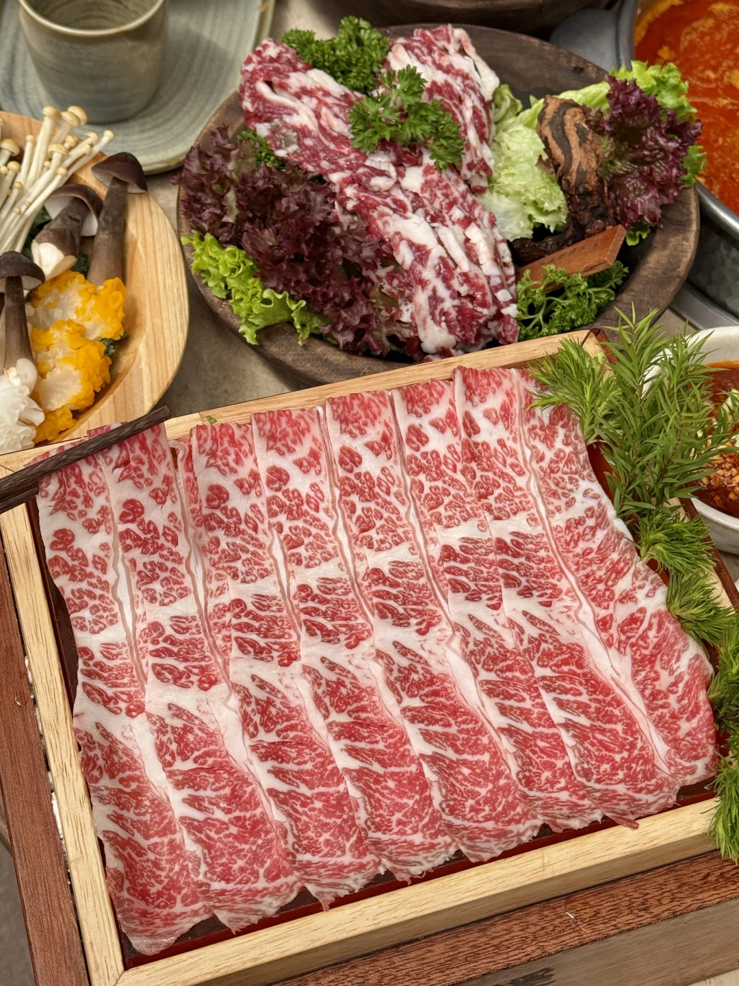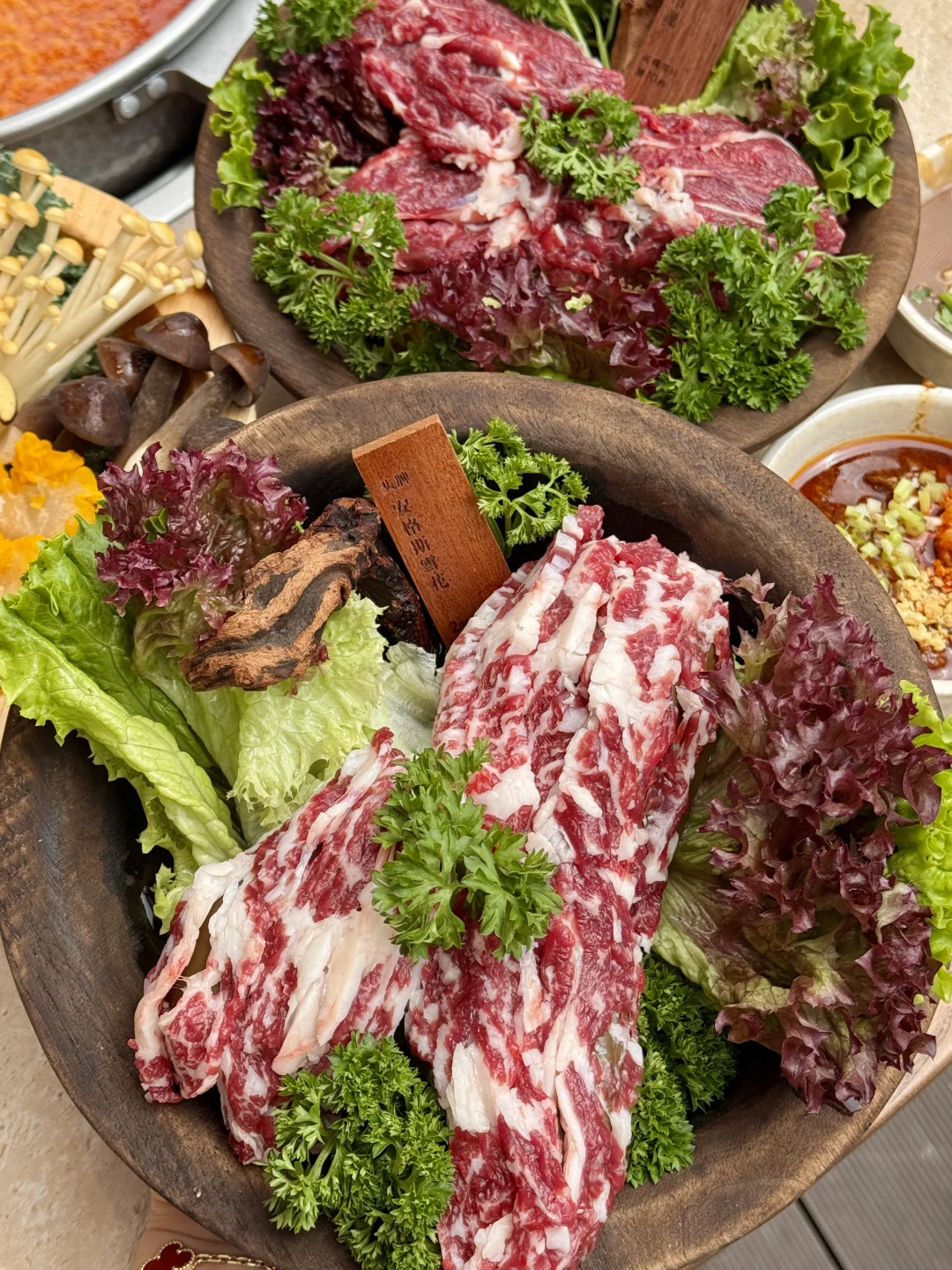 牛肉品质也很不错,都是明档鲜切的🥩雪花、吊龙…奶香奶香的,蘸上秘制牛肉酱更是一绝!!!