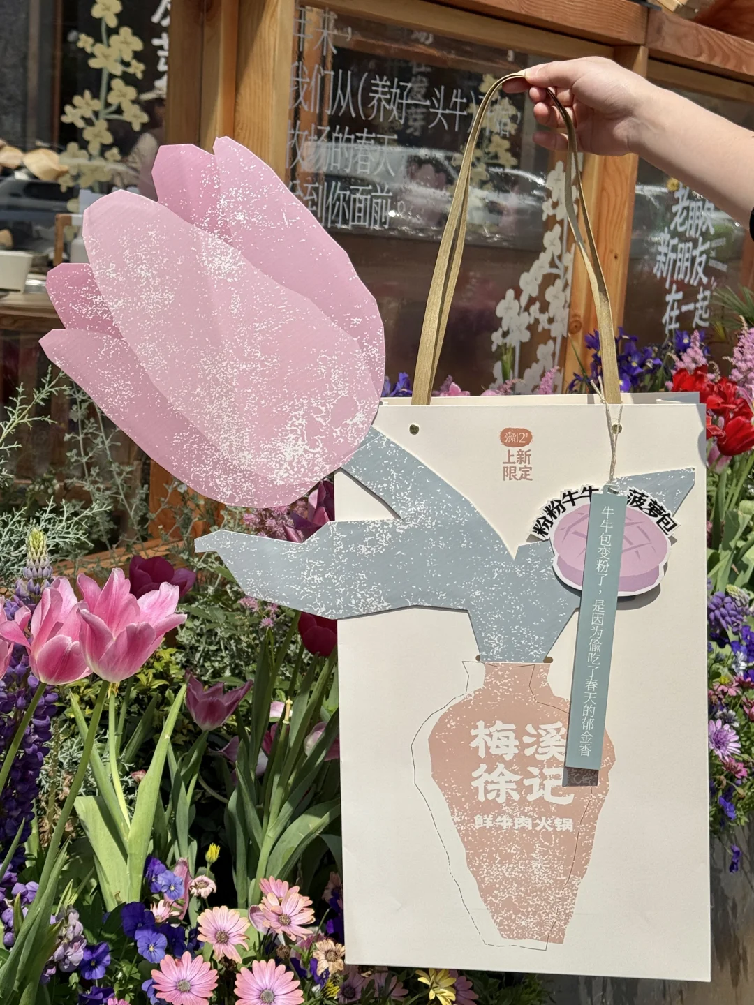 洋房窗外郁金香🌷簇拥下吃牛肉火锅,好有氛围啊!很是惬意了…
