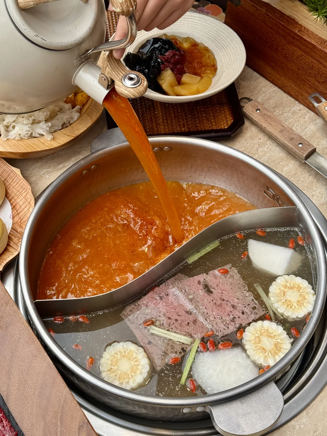 ✔️沙茶拼牛骨清汤鸳鸯锅底