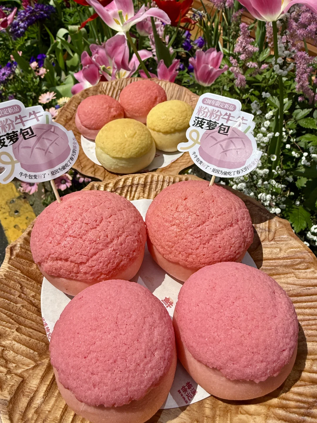 mini粉嘟嘟的菠萝包好可爱!!和花花也很搭💗
