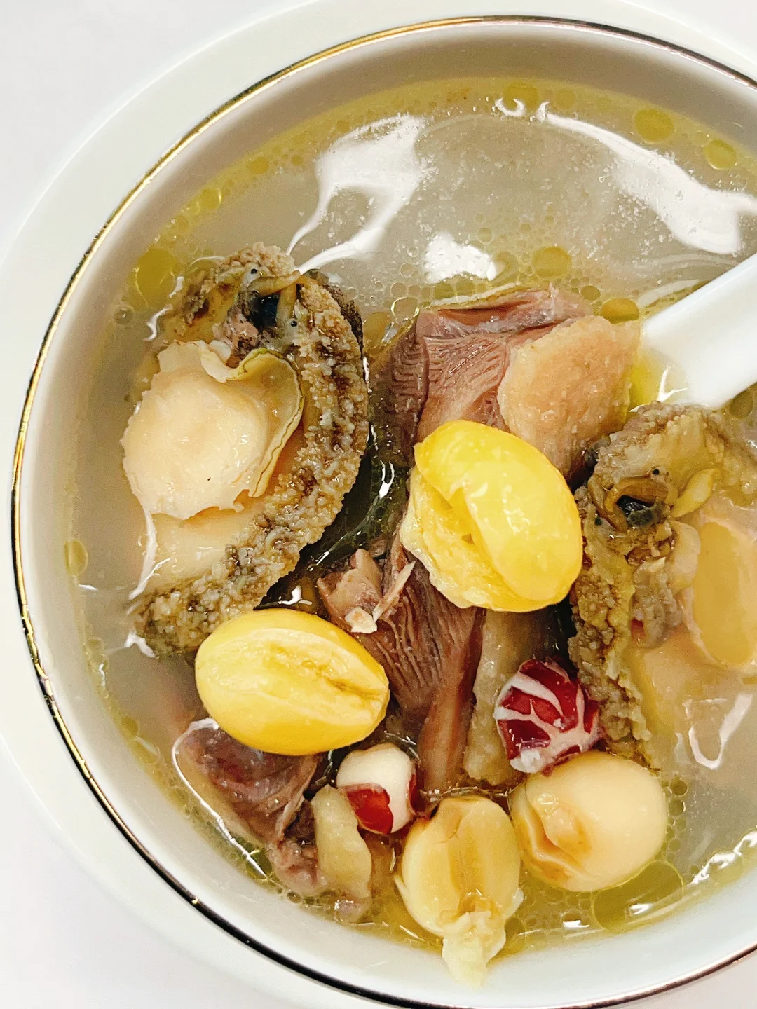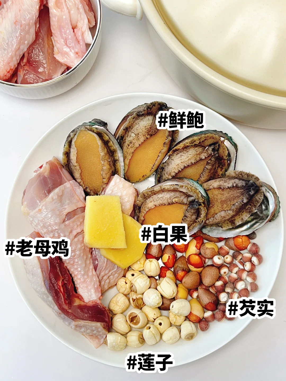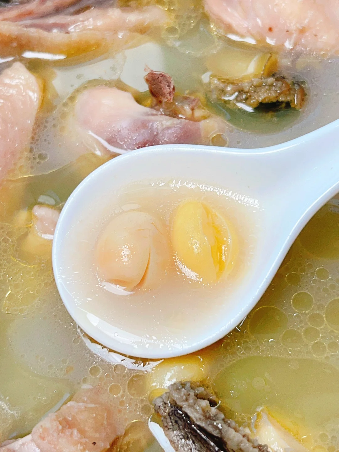 ▪️鸡肉焯水后和其它食材冷水下锅,大火煮沸,转小火煲60-90分钟。
