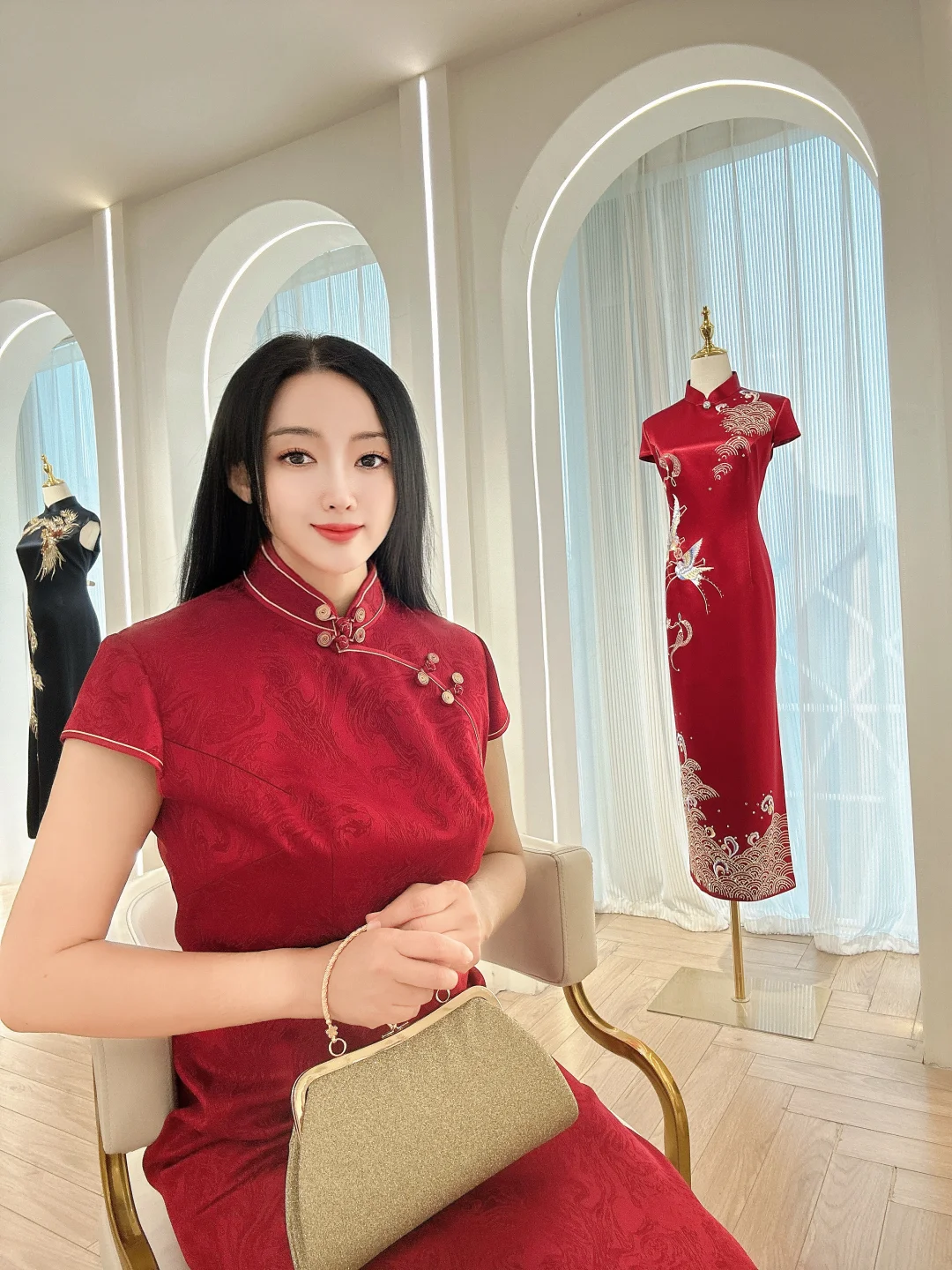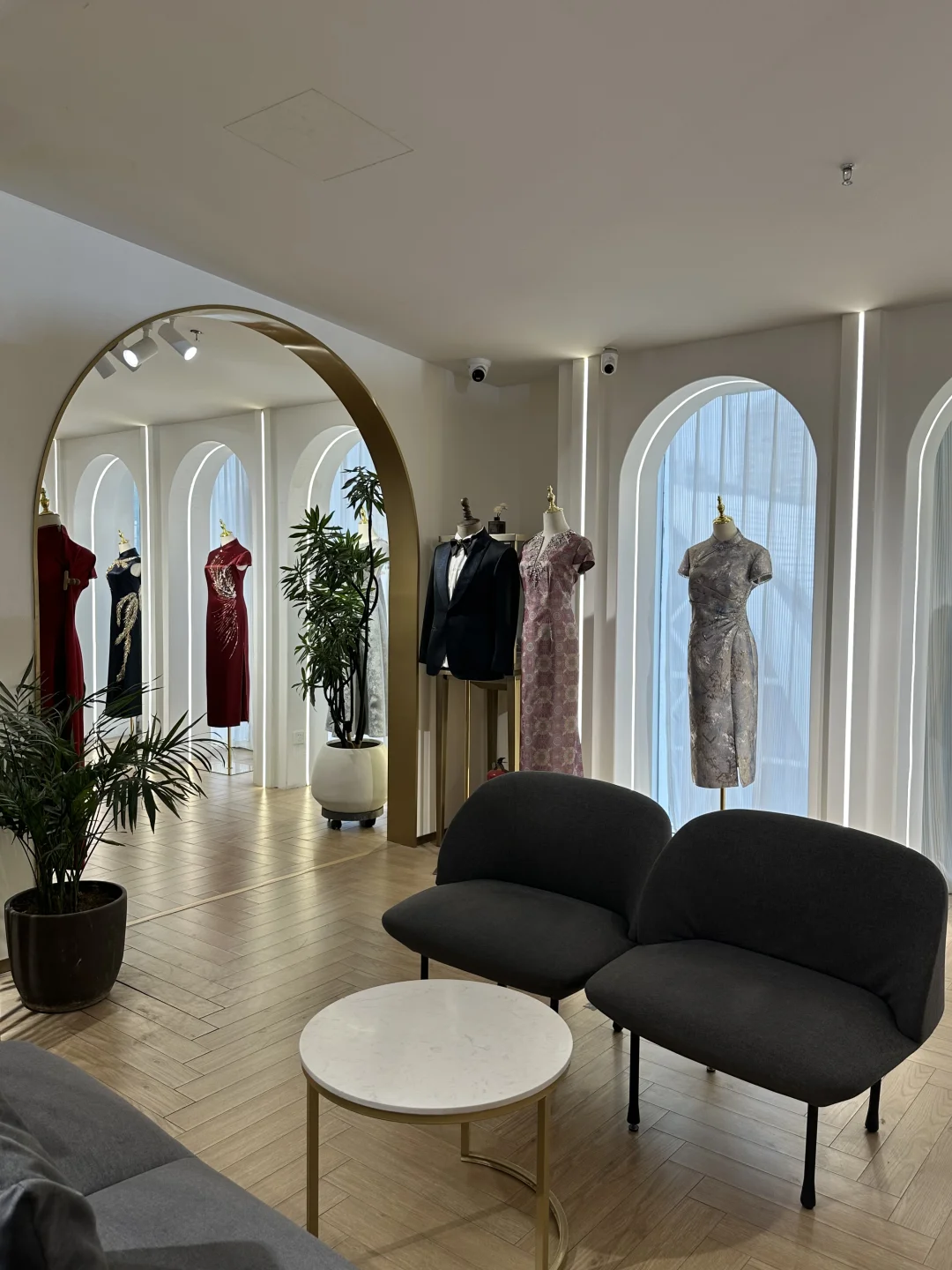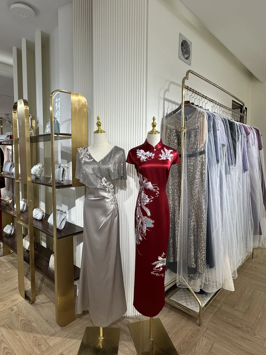 店里的款式真的全到离谱!中式旗袍、西式礼服、妈妈装、爸爸装、新娘旗袍/敬酒服一站式搞定,非遗宋锦、进口意大利礼服缎、真丝桑蚕丝等高端面料,纯手工缝制,每一处刺绣、盘扣都精致到细节,质感远超租赁款!👍
