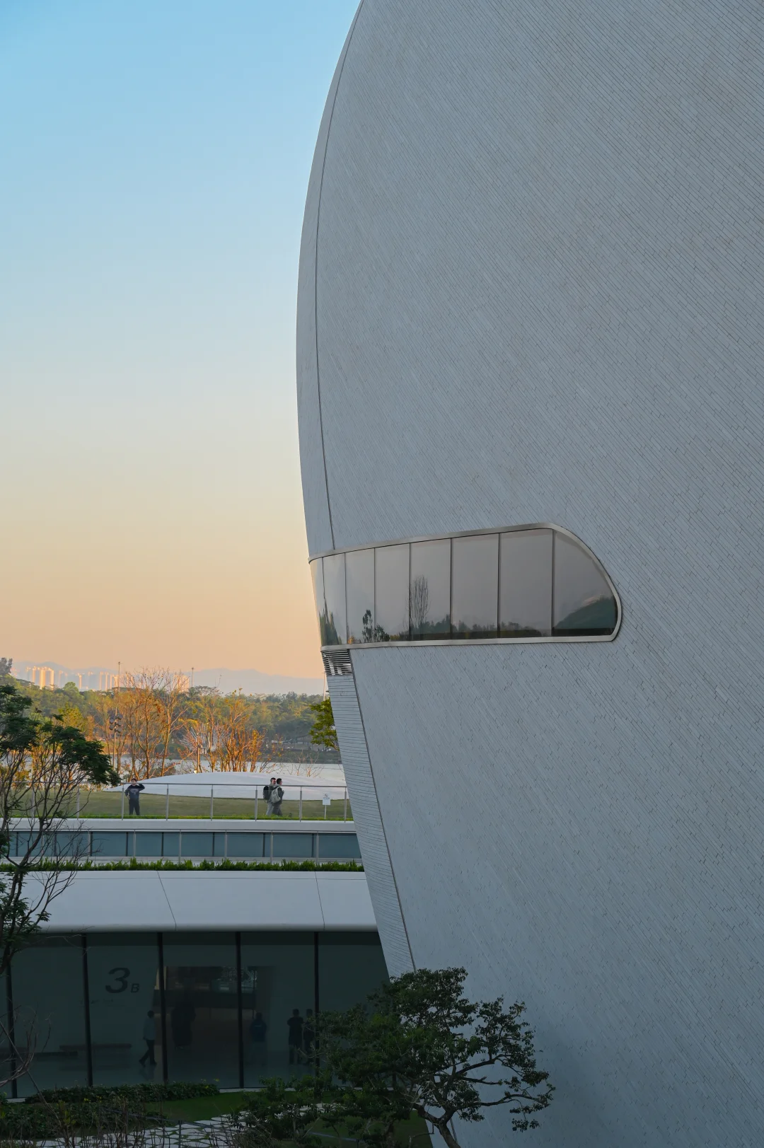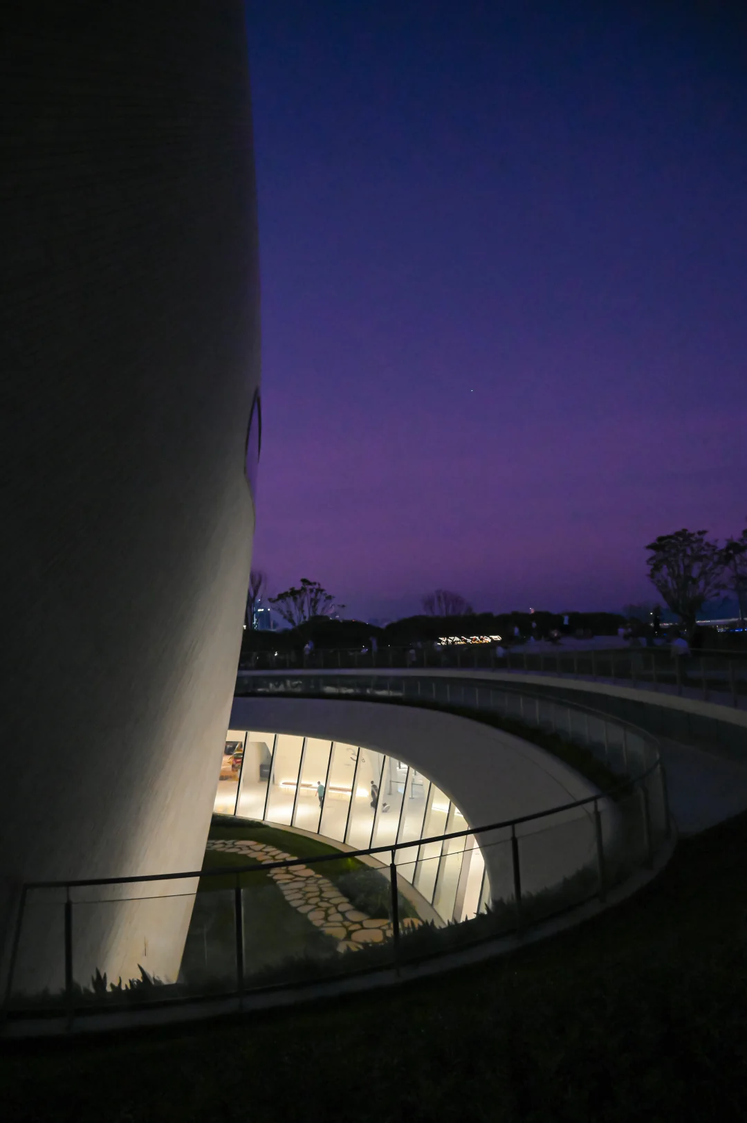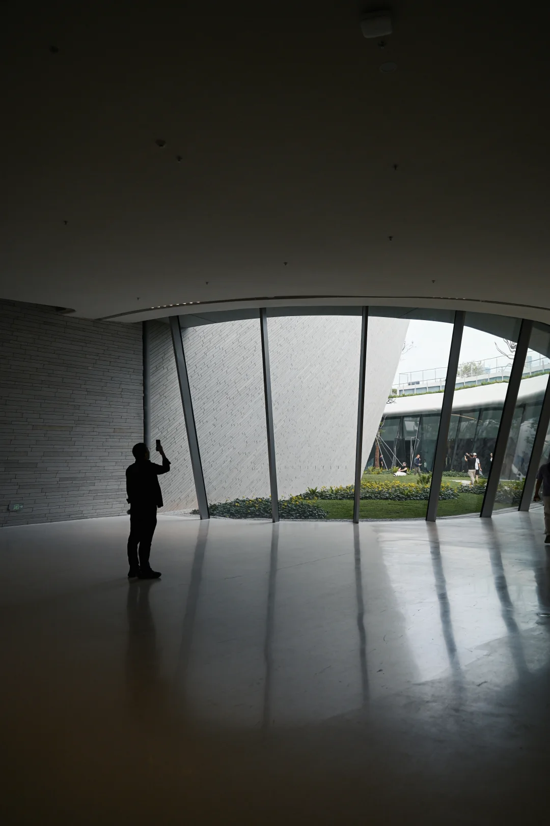 衔接城市与人才公园的隧道被塑造成一个充满未来感的虫洞空间,还有穹顶上洒下来的天光、投射在墙面上的植物影子也很美丽。