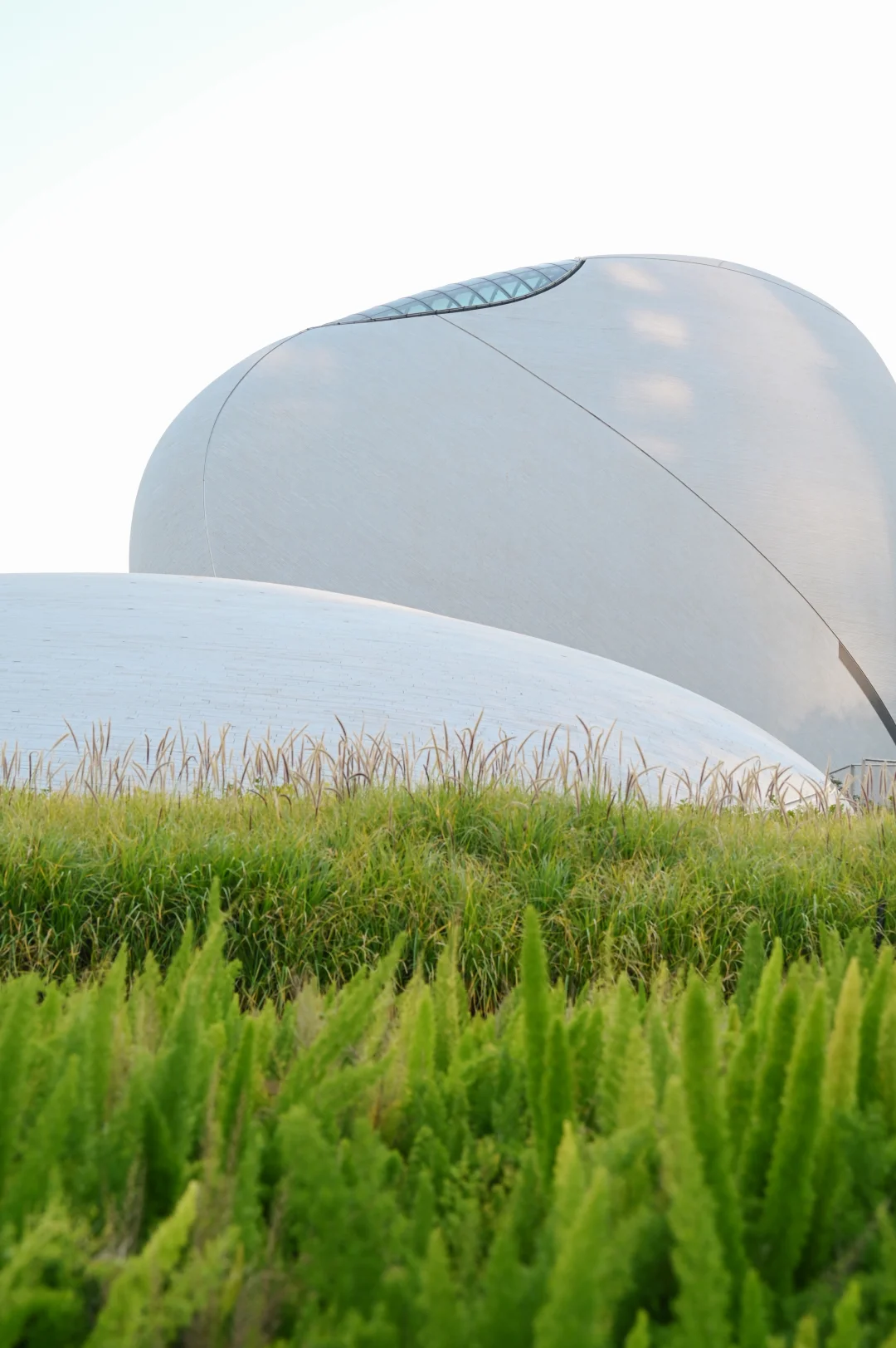 将主要展馆置于地景般的草坡之下,使得建筑隐于自然,又巧妙连接海洋与城市、建筑与公园。