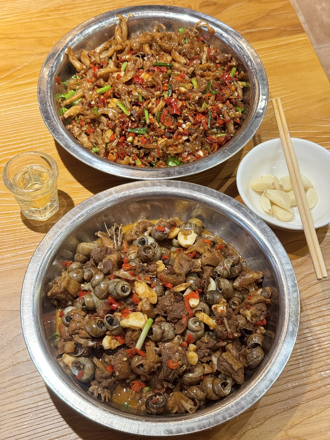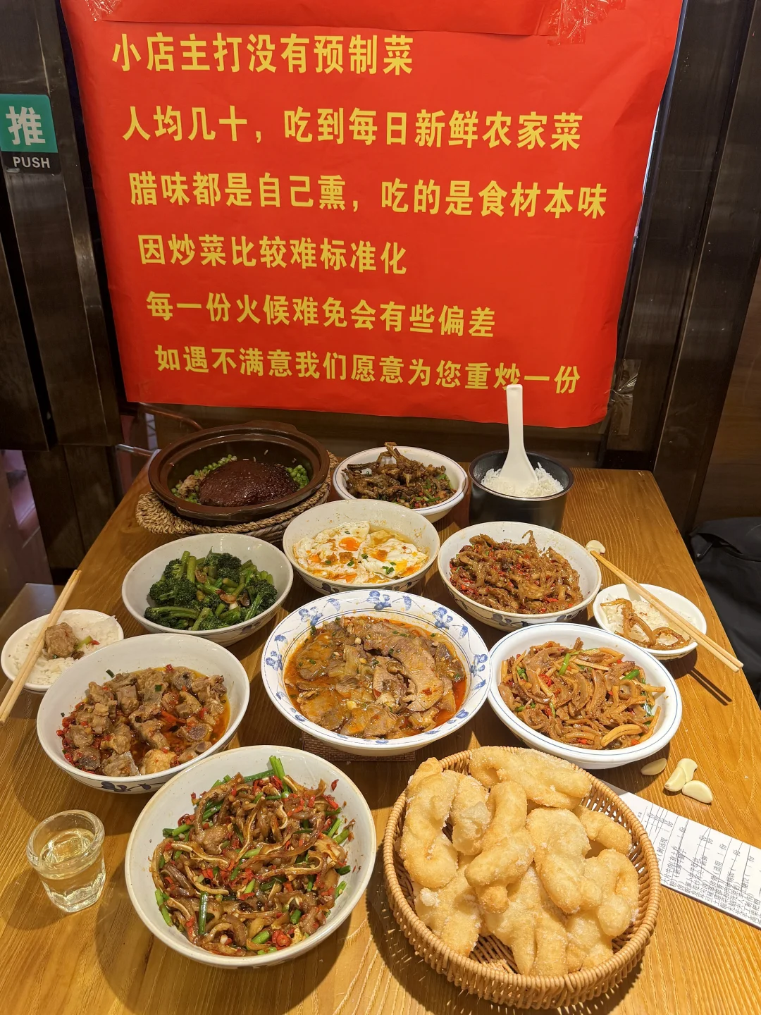 长沙人嘴可真严!就得找这种居民楼下的老店… 开了十多年、好吃亖了!广电朋友都经常来吃! 叫:厨道光脑壳。饭点巨多人…建议早点去! 人均四五十就能吃饱,便宜大碗量足!大片牛肉、胸口油炒鸭掌筋、土鸭焖田螺钵、酸菜扣肉饭,每道菜都jujuju下饭!!求求🥺来长沙别只知道去市中心网红店打卡了,个人认为这里才是真正长沙必吃!!