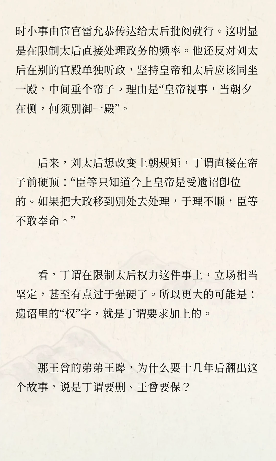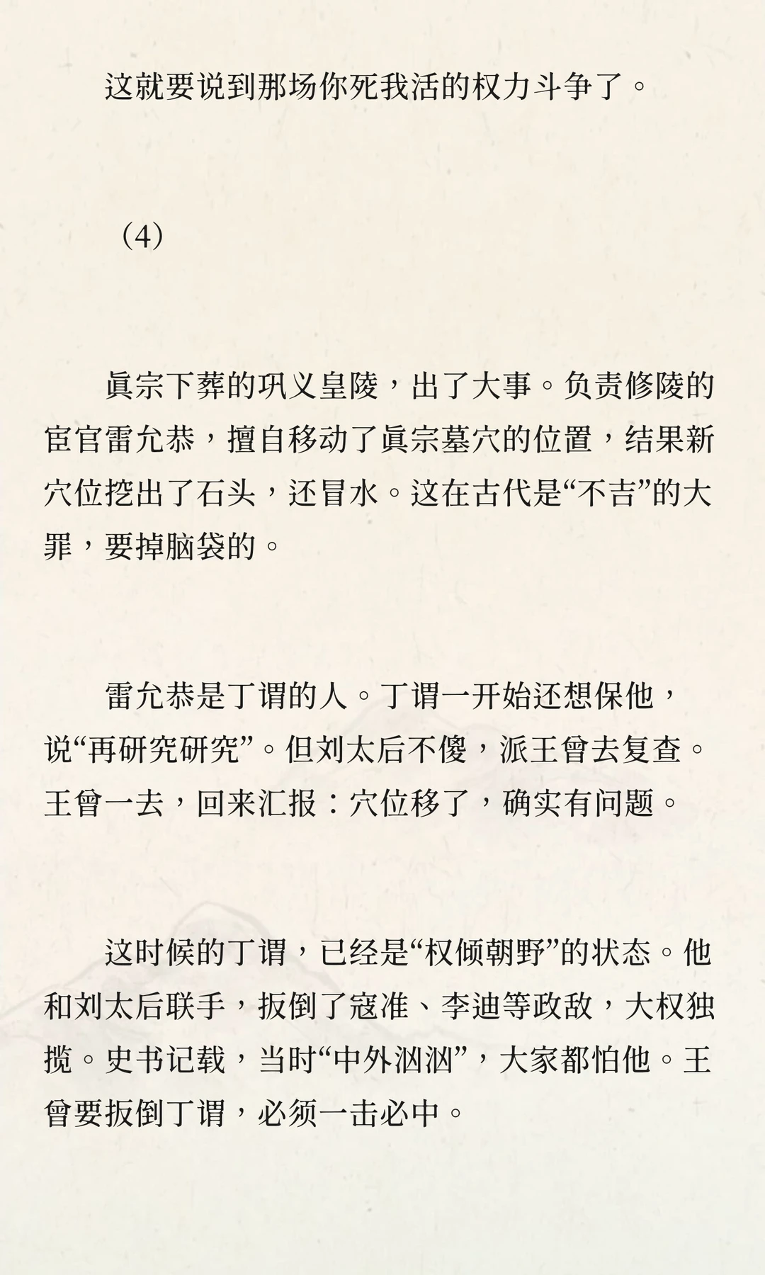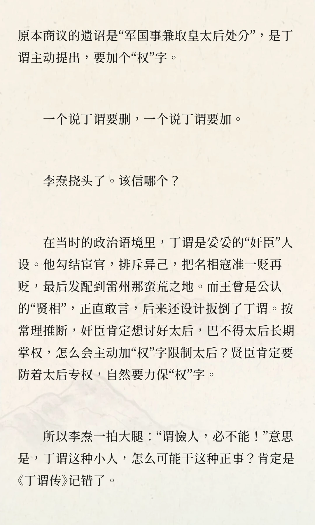 宋真宗病逝,遗诏中“权”字争议引发朝局变局。最终太后垂帘听政十一年,虽未完全限制其权力,但“权”字成为未来政治斗争的先例。