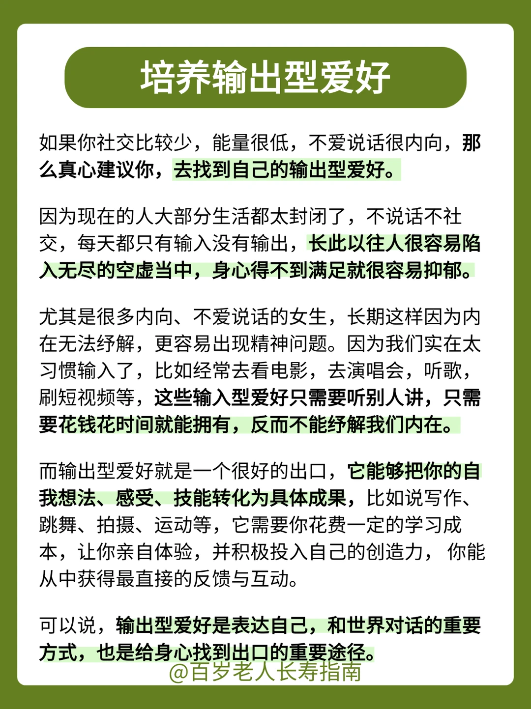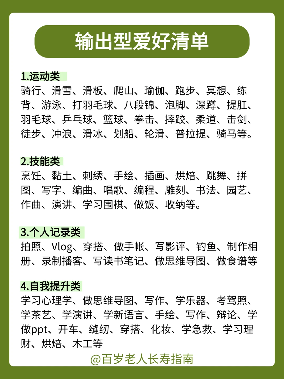 输出型爱好,能够让你去做实际的事情,从你自身感兴趣的事情入手,让你每天保持有效的输出,而不是让你一天过完后什么都没剩下,只有虚无感~