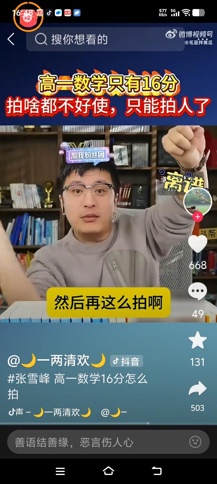 一位网友在我评论区说,他不过糊弄那些无知的家长而已,只是为了赚钱,值得你你这样评价他? 说这话的人只能说你还没有看多少张老师的直播! 说句实话,家长无知,到不能无知到不知道好坏,人心不是骗来的,骗一个两个不能成千上万吧!说多少不去看他做了多少,怎么做的! 如果只是为了赚钱,他可以不问青红皂白只是卖书就行了,面对一个家长的咨询张老师这样回答,你孩子高一数学只考了16分,你还问给他拍什么书,现在拍书没用了,只能拍人!你就要一只手把他摁住,另一只手就拍他了! 还张老师说的真对! 只得16分不是学没学会的问题,是他学没学了问题了,几乎没有听老师讲,一点没学,啥书能有用啊,就是欠揍了! 如果是糊弄家长就卖他书得了呗何必说这些话! 之所以大家信任张老师,4谁都不怕傻,是不是真的有用,家长不知道吗? 现在有些父母真是太娇惯孩子,总认为孩子小,担心心里承受不住,就百般宠爱,说不得管不得,甚至老师批评都不行,孩子也是认为,我是玻璃心,谁也别碰我,老师每天也是战战兢兢,不知道该怎么面对这样的孩子!这样的孩子能成才吗! 张老师一语道破,高一16分,就是一丁点没学,不是欠揍是啥!
