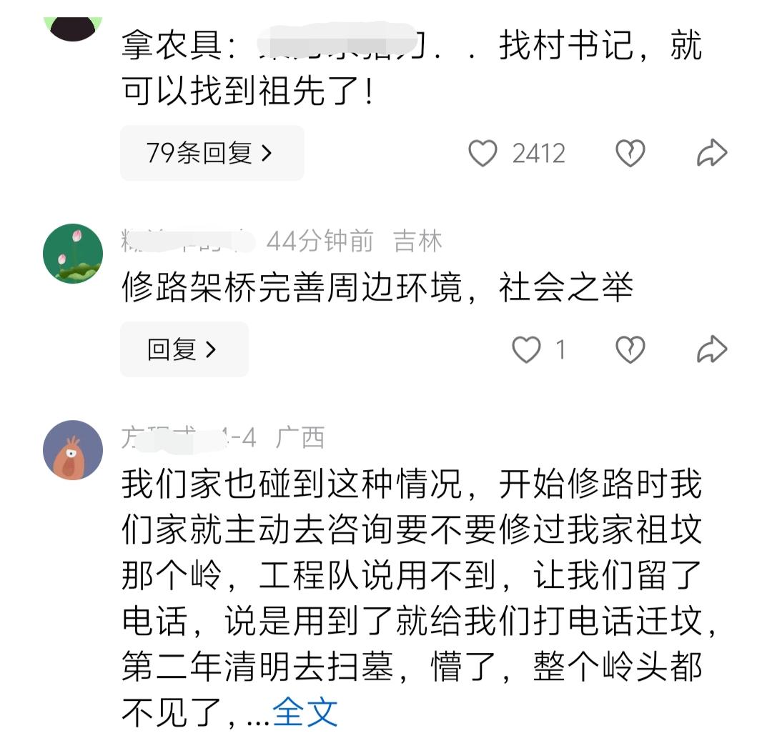 一大家子近二十个青壮年去扫墓祭祖,结果到了后发现老祖宗不见了,没有通知他们就乔迁了!如此荒唐之事,竟然真实发生了。 今天在网上刷到一个视频,近二十个青壮年,拿着各种祭扫用品,打算在清明节这天到祖坟祭拜祖先。 结果,等到他们到达祖坟时,却发现老祖宗不见了! 原本祖坟所在的那个长满树木、野草的小山坡,现在已经被铲车、挖掘机铲平了。原来的树木、野草不见了,只剩下一片平整的黄土。 看到眼前的黄土,想到不知去向的祖宗。视频中,每个人的脸上都露出疑惑的表情,三三两两的站在那儿沉默不语、不知所措。 从他们疑惑的表情可以猜到,在祖坟被铲平之前,他们并没有得到消息,到了以后才知情祖坟被掘了。 视频拍摄的时间并不长,但是评论区里的留言却不少。 有网友感觉,他们可能不是本村村民或早已迁走了,祖坟在这儿时间久了,平常很少回来。本村山地整改时,没能通知上他们,结果就出现了这种情况。 有网友表示,自己也曾遇到这种情况。由于不经常回老家,在村里开始修路前,就主动询问需不需要迁自家的坟。工程队告诉他们不用,让他们留下电话,表示需要迁的时候给他们打电话。结果他们第二年清明扫墓的时候,就出现了和视频中一样的场面。后来多方互推之下,事情不了了之。 有网友给他们支招:拿上家里的农具,找到村里的书记,就应该能找到祖宗了。 正常来说,因各种原因需要迁坟时,应该早就提前通知墓主后人了。出现视频中这样的情况,很容易引起一些矛盾,甚至造成一些较严重的后果! 毕竟,祖坟被挖,绝非小事!挖人祖坟,不仅违背了公序良知,更有违法、违规之嫌。