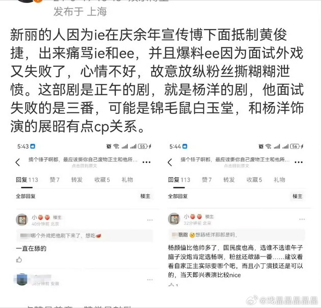 呃家脂粉真的很会洗脑,明明在xx楼后接的戏,iejj都不喜欢(图9),前四张把这些瑞剧内戏和瑞投资的剧全部洗成他面试上的,看看图5到图8,新丽的剧、正午的剧还有其他大剧才是他想要没面试上的。