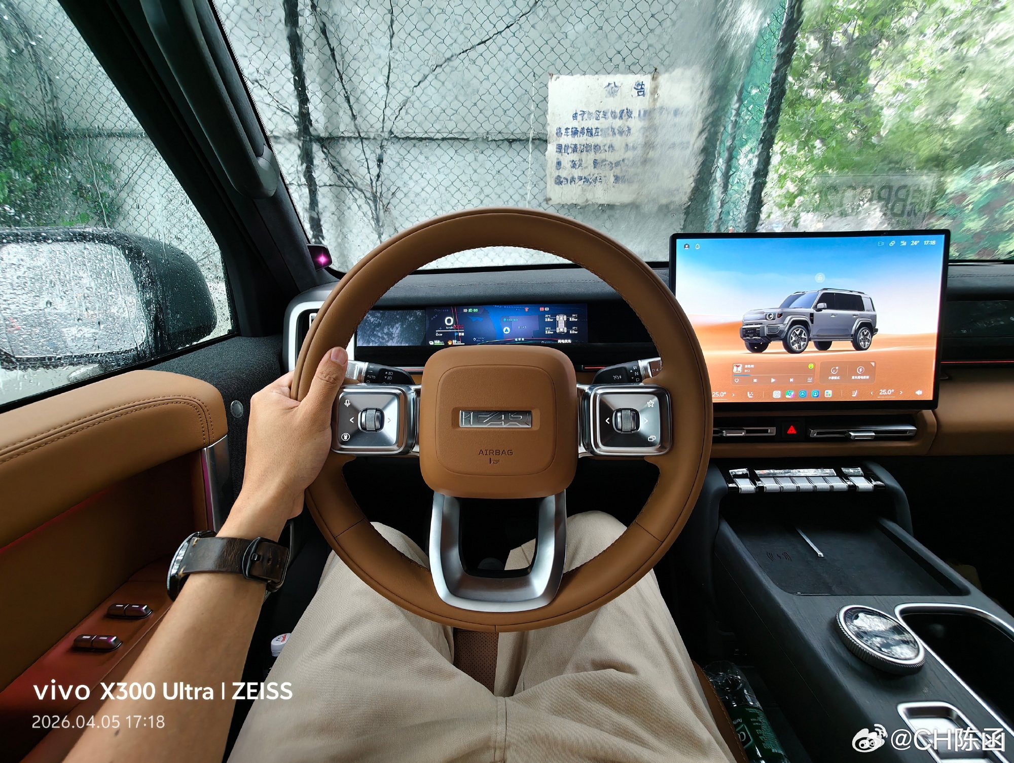 本来出来想拍个智驾测试的,没想到雨这么大。图1是vivo X300 Ultra超