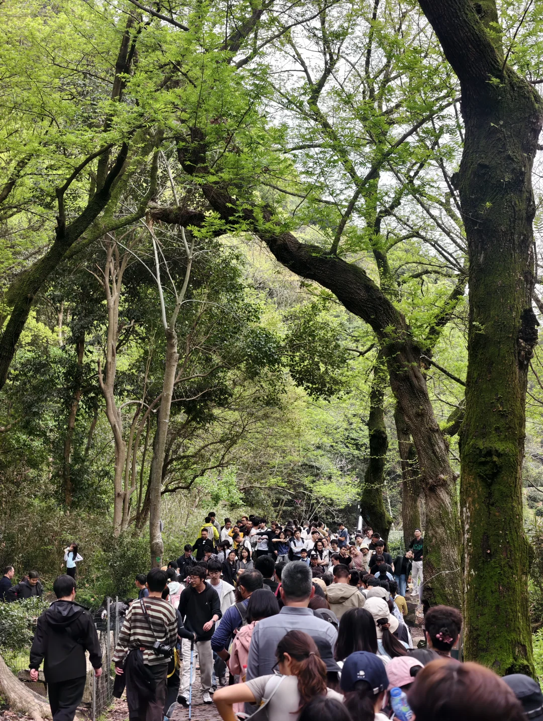 九溪十八涧,每处过水台阶都在排长队。。。 双向长队 昨天一天雨,水量充沛,水流较急 不想排队的,只能拖鞋淌水 如果还要来的,建议带凉鞋😔