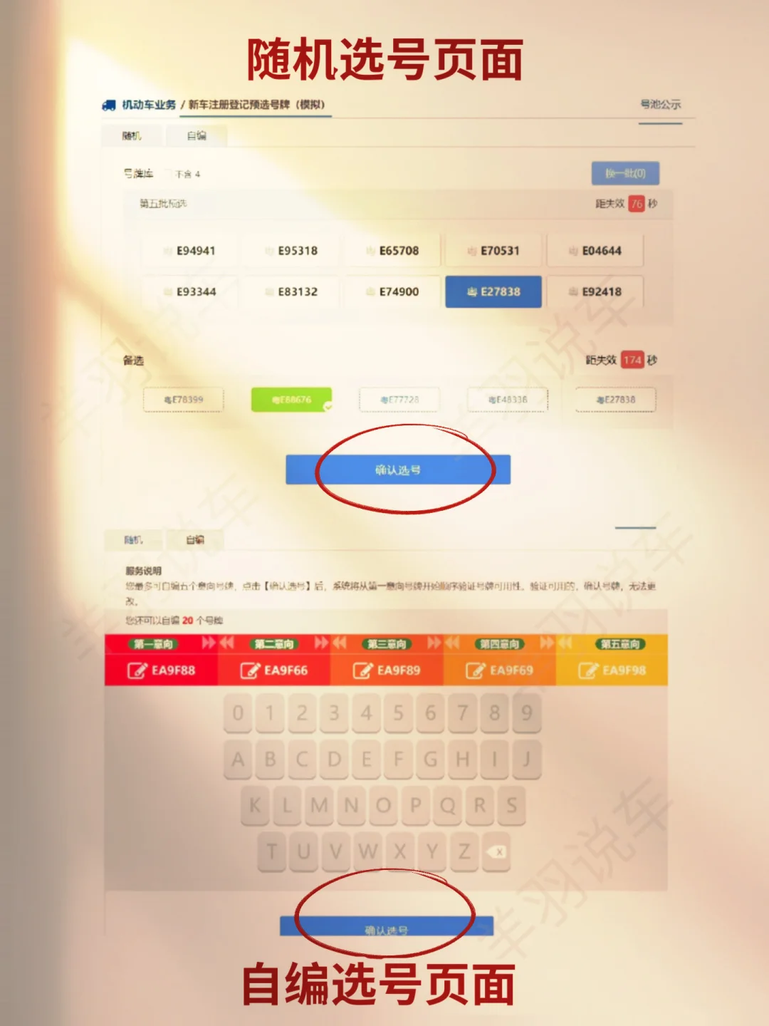 建议:先网上自选,如果不满意还可以车管所选,共有120次选号的机会【羊羽说车】