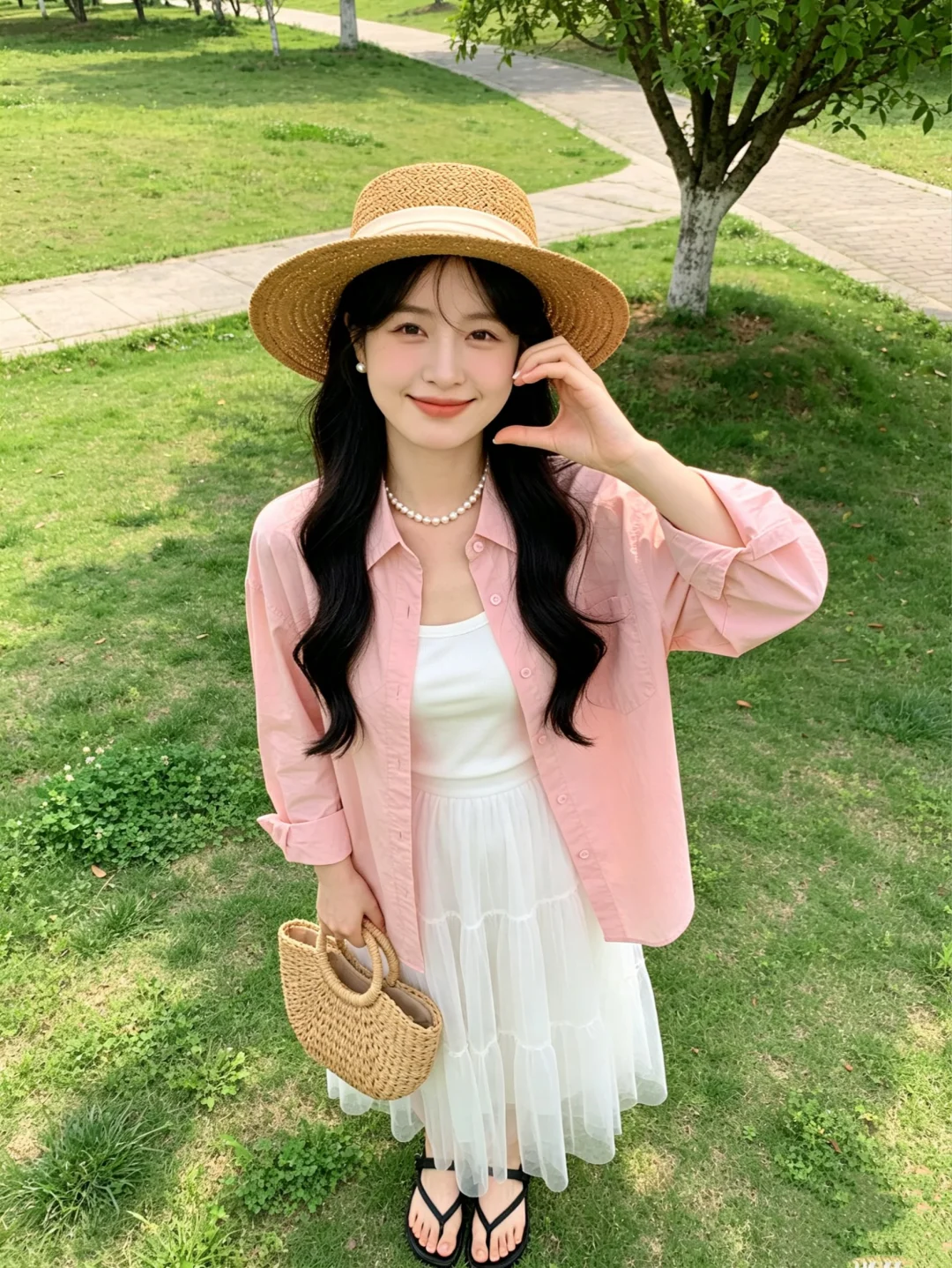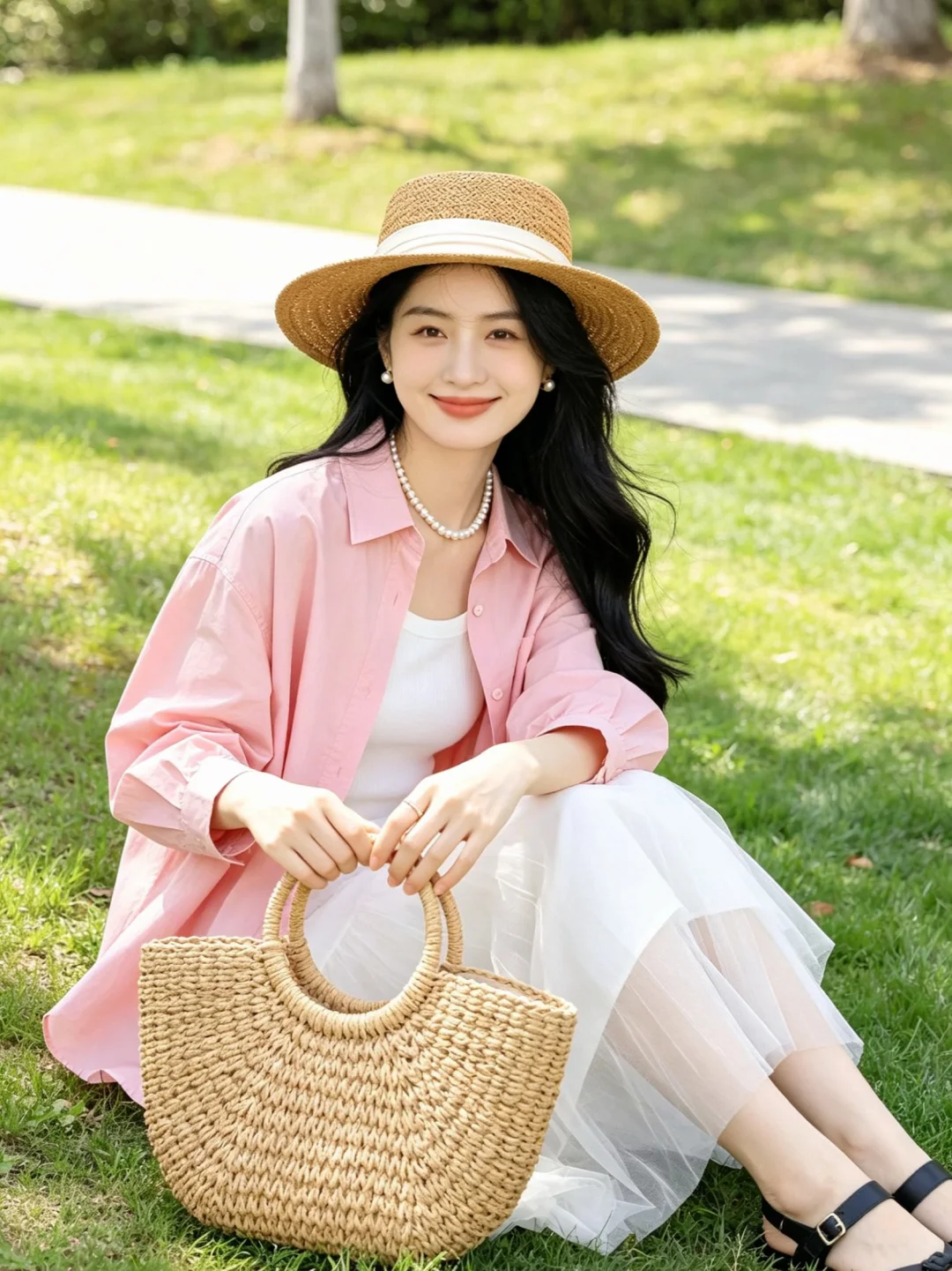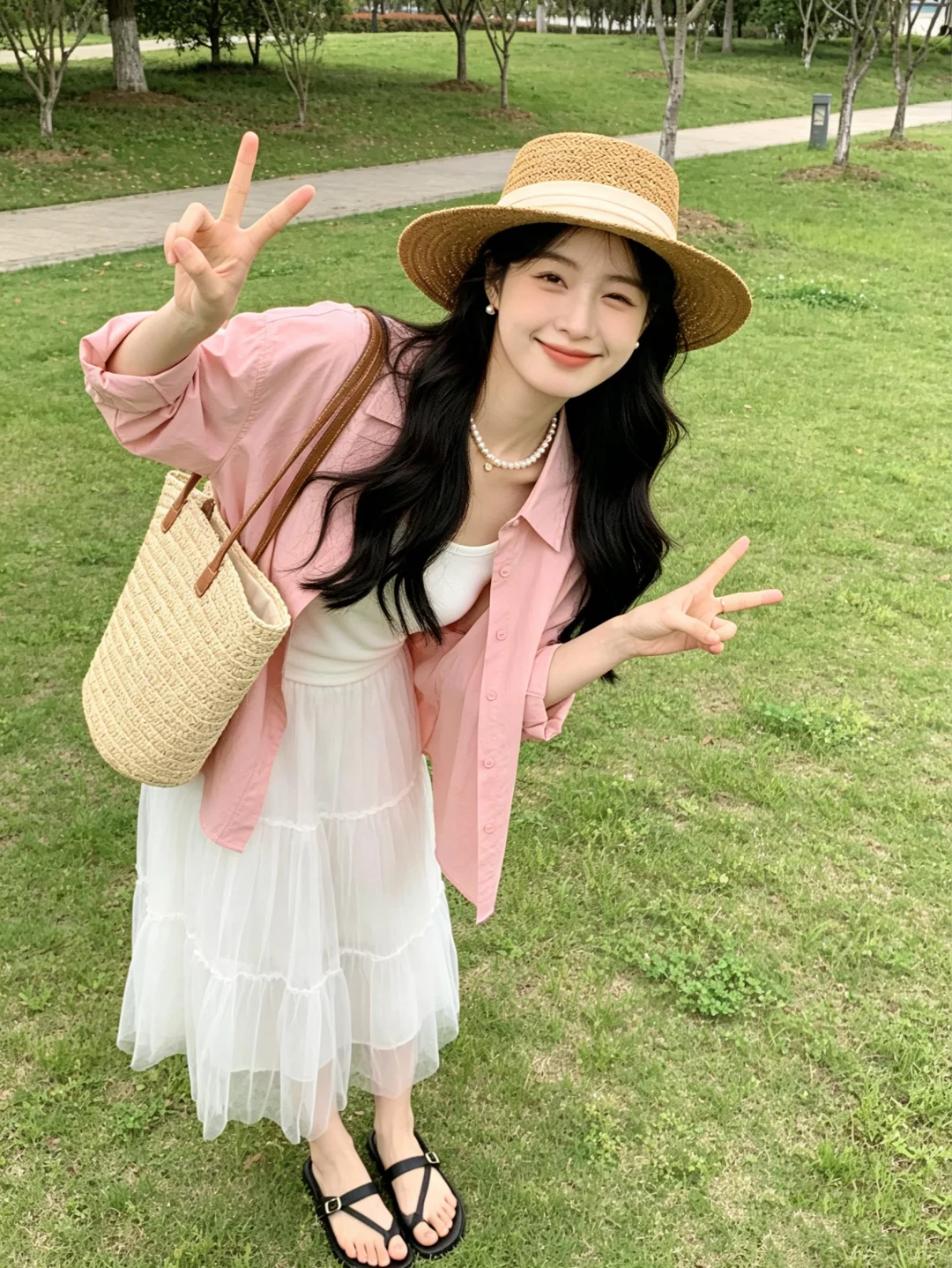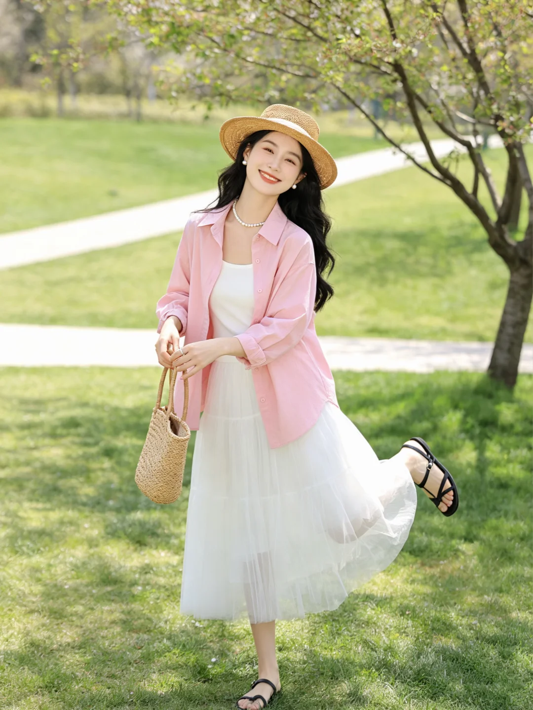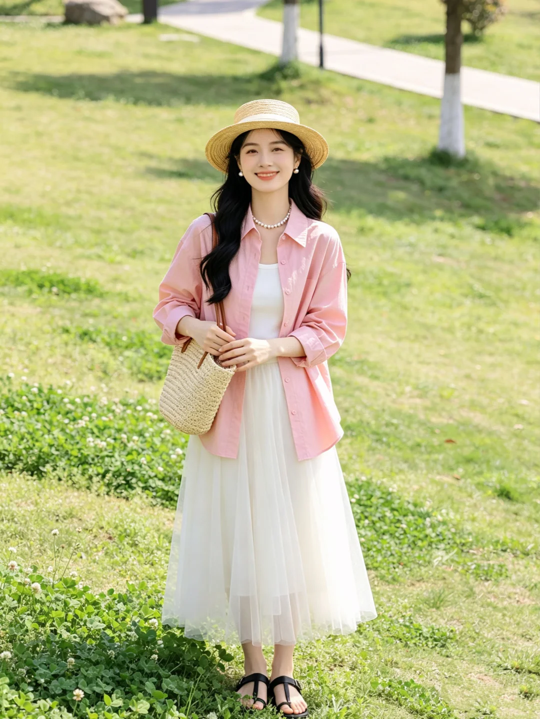 温柔穿搭风 粉色衬衫怎么穿 粉色少女心 一抹樱花粉 白色连衣裙 赏花穿搭 ootd穿搭 粉粉嫩嫩