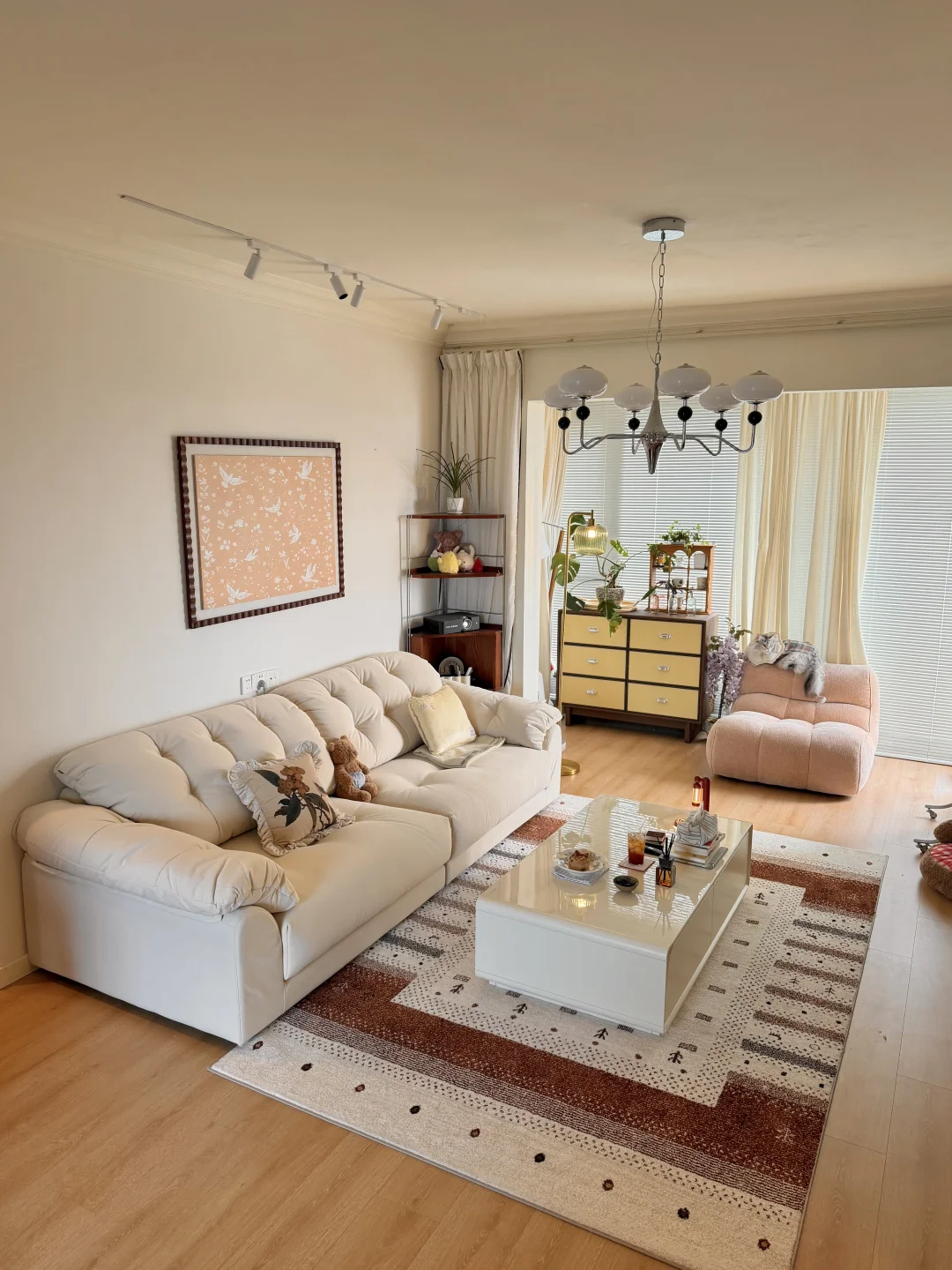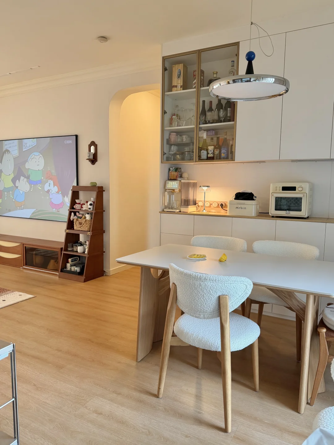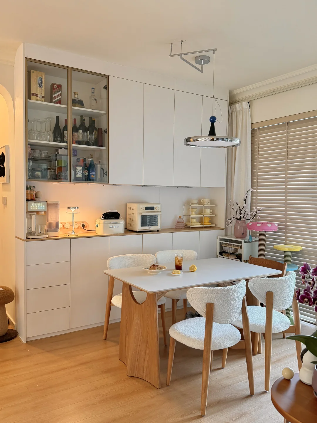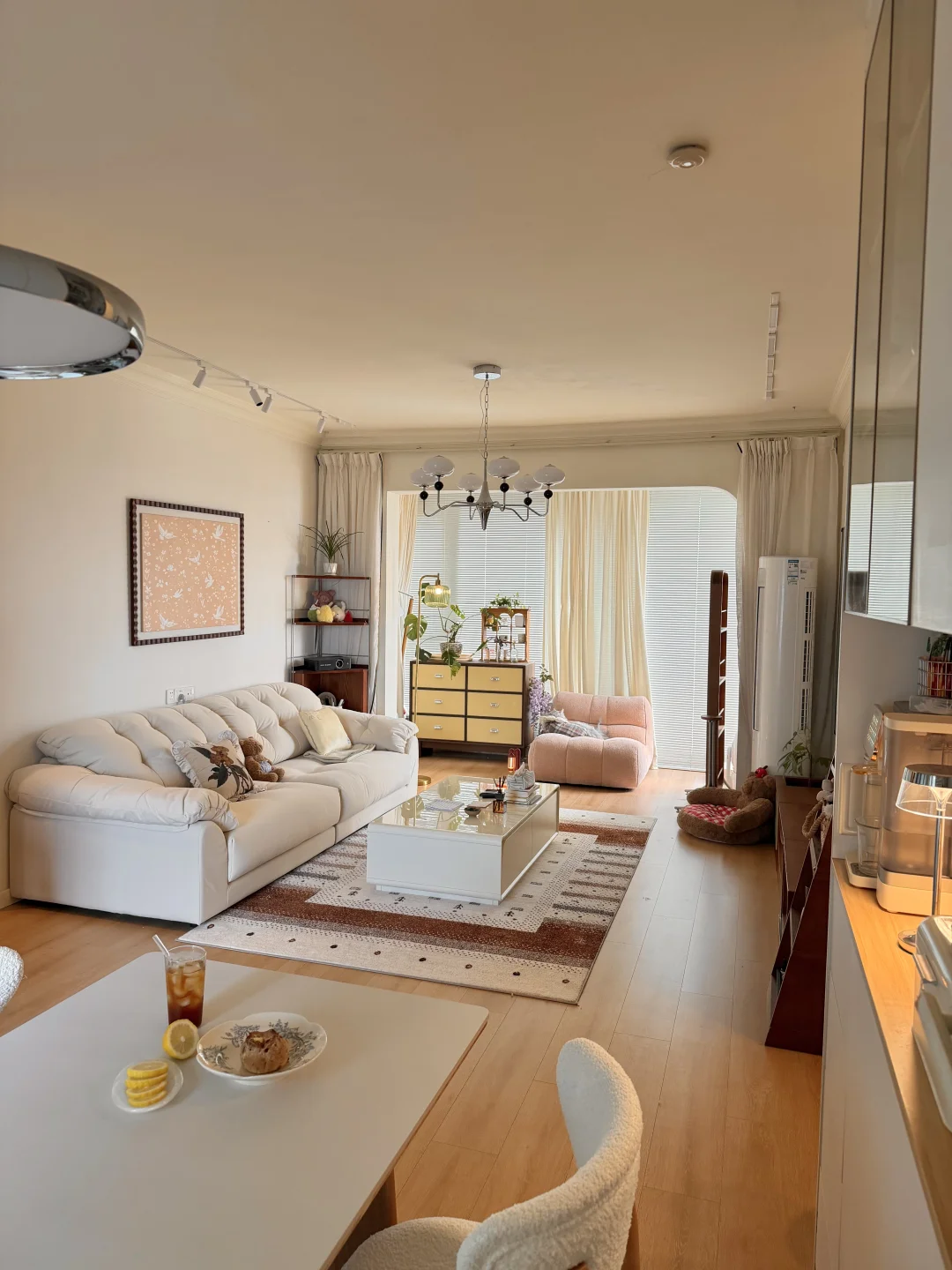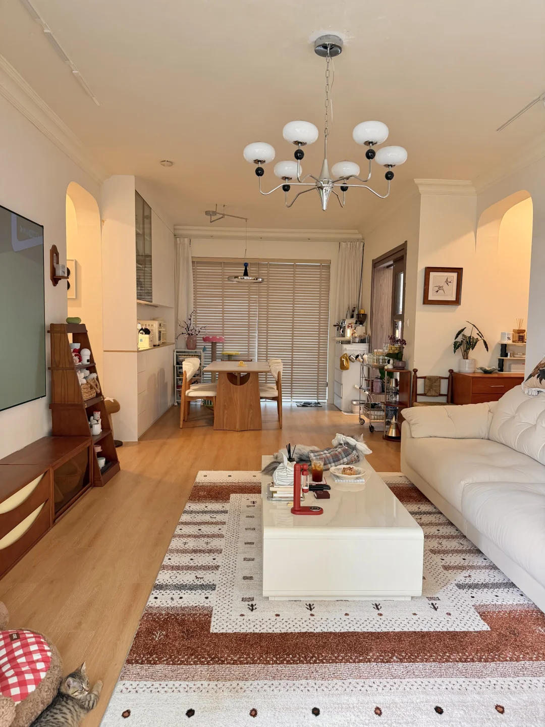 就会把家里布置得很漂亮 收拾地整整齐齐的 还可以养两只乖乖的小猫 窝在沙发里 追剧 这样的日子过得太有盼头了~❤️ 交换春天 ourspring 小户型装修 精装房改造 客厅装修灵感库 小户型显大 中古风 餐桌 原木风 精装房设计 装修灵感库