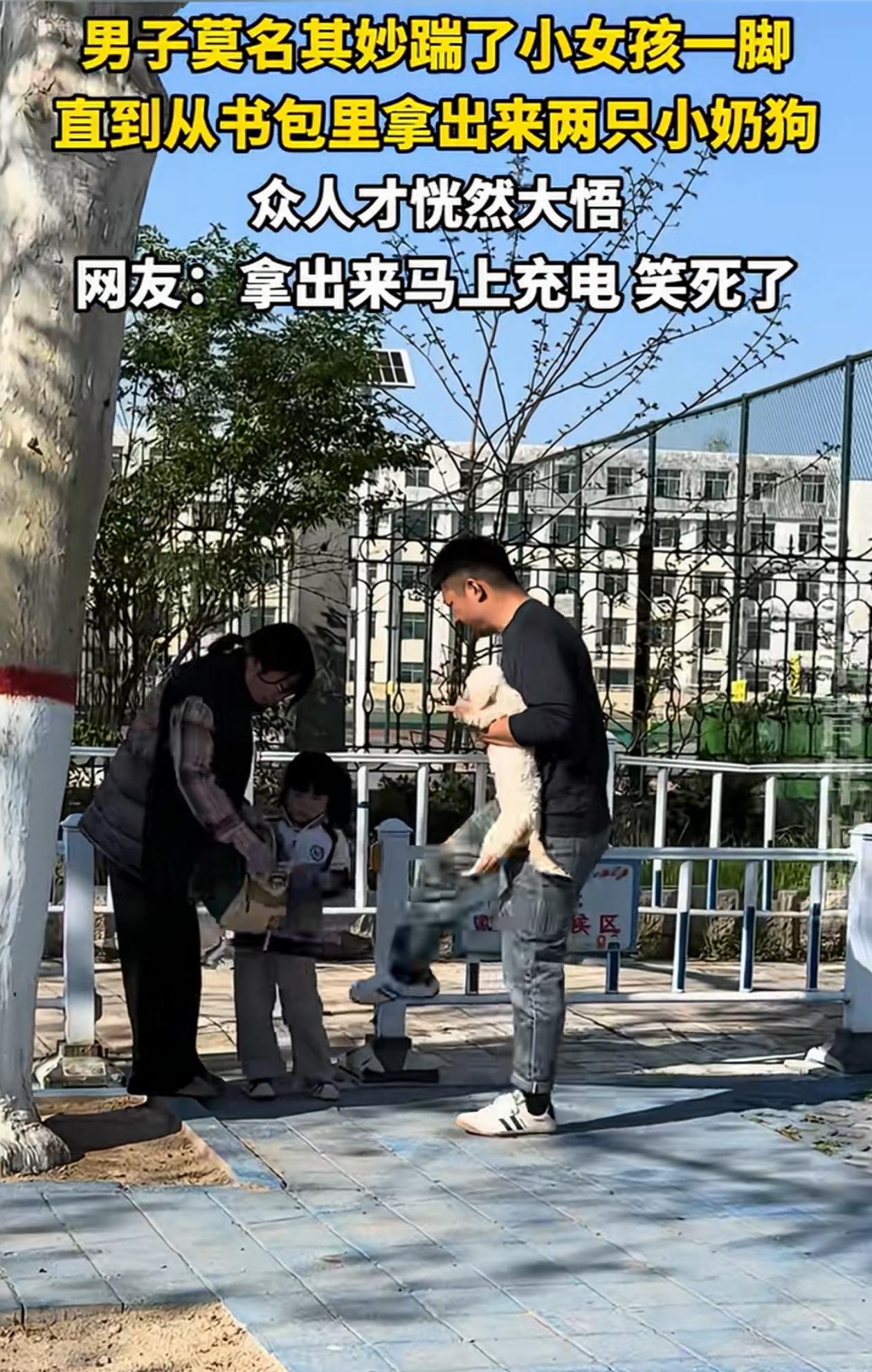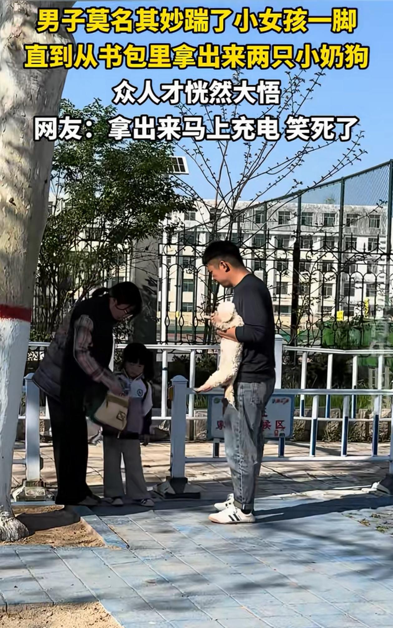 万万没想到!山东,小女孩正和母亲在街边站着,突然一个男的抱着一只狗,过去踹了小女孩一脚,路过的人看见这一幕正想发火,结果小女孩转头就从书包里掏出了2只小奶狗。 看来这个女孩是趁狗主人不注意,觉得小狗狗很可爱,所以偷偷藏在书包里,带到了学校去。没想到放学后被狗主人发现了,现在直接一个人赃并获。 看得出来狗主人也是急坏了,毕竟小狗一天没见到妈妈,估计该饿坏了。 所以小女孩从书包里把狗掏出来后,狗主人二话不说,立刻把小奶狗塞过去喂奶,生怕它把自己饿着。 看到小女孩的操作,有网友调侃说可不能未经同意带走人家小孩啊,也有网友猜测这小女孩八成是拿去跟同学显摆了! 早就听闻幼儿园小朋友的书包堪称百宝箱,现在我算是服了,毕竟谁能想到如此小的书包还能塞两只狗,也不怕狗狗闷着。 也就是狗妈妈不会说话,它要是会说话,估计都得当场让主人放她下来,它自己都要踹小女孩一脚。 你怎么看小女孩的行为呢?