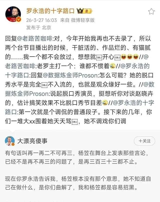 罗永浩公开骂赵晓卉,完全没道理啊。赵晓卉不打拳,不立悲情人设,不挖苦男人,只讲打工人的悲欢离合,又纯粹又有趣,听她讲脱口秀总能会心一笑,感觉非常真实,简直就是打工人的嘴替。可就是这么一个不煽动对立的女演员,竟然被罗指着鼻子骂作品太差和高人气不符。可是,网友的眼睛是雪亮的,认可一个人自有认可的道理,有人气就那么其罪当诛吗?非得打拳,卖惨,挖苦男人才配得上高人气吗?脱口秀是娱乐,应该雅俗共赏,老青共赏,男女共赏,难得有一个不考挖苦男人要掌声的女演员,还被罗打压,真的很不理解。
