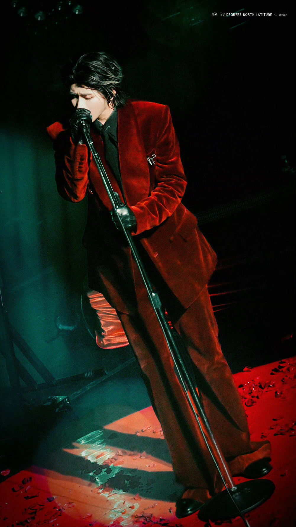 蔡徐坤 KUN全球巡演LA站造型,一身Helen Anthony红丝绒西服套装,点缀一枚WERKSTATT MUNCHEN胸针,配上黑色皮手套,举手投足间洋溢着矜贵复古的腔调。🥀🍷 蔡徐坤2026KUN全球巡回演唱会