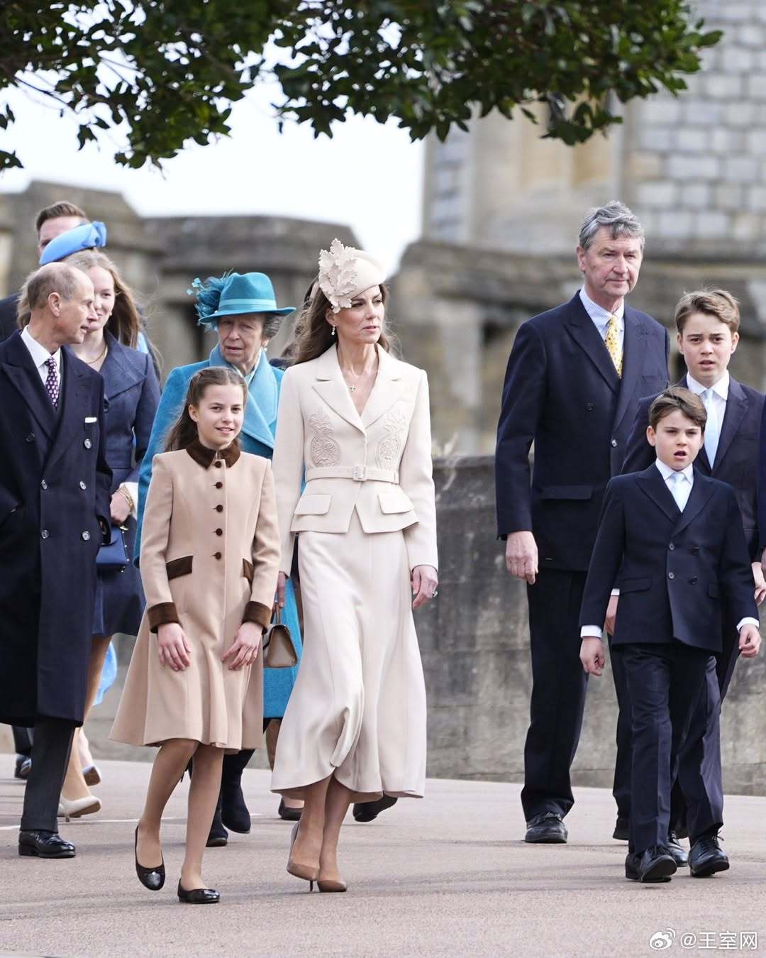 英国王室 🇬🇧4月5日,威尔士亲王夫妇和乔治王子、夏洛特公主、路易斯王子出席在温莎城堡圣乔治礼拜堂举行的复活节礼拜仪式。世界各国王室凯特王妃