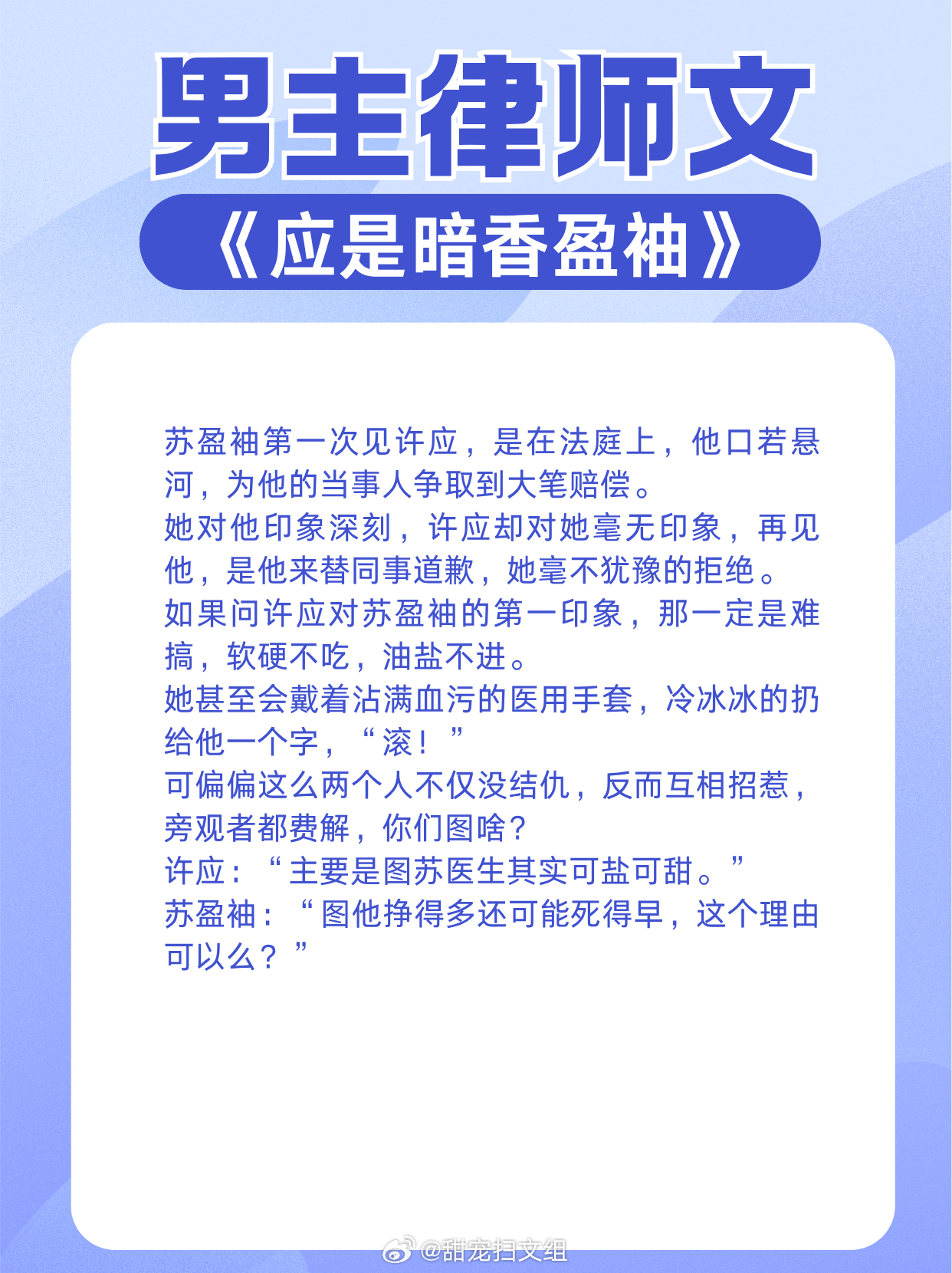 男主律师文,外表温文尔雅,冷静从容!实则能言善辩,气场爆棚,专业能力满分!1、《智者不入爱河》 作者:陈之遥2、《情生意动》 作者:随侯珠3、《她总拒绝我》 作者:仙人吃土4、《我只喜欢你》 作者:步莲敛5、《应是暗香盈袖》 作者:山有嘉卉6、《寄生谎言》 作者:余珊珊热门言情小说推荐 那些让我着迷的小说