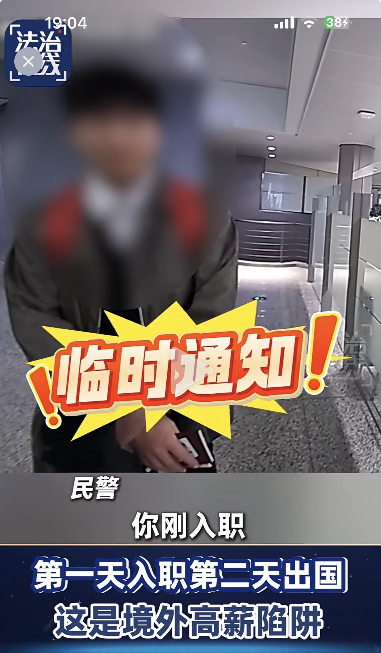小伙子入职第一天就被公司要求第二天去东南亚国家出差,在海关被警惕的民警拦截。 在海关出境处,警察随便就给他找了两个破绽:公司具体是做什么产品的?为什么要用旅游签证出境?正常情况下应该派工作签证! 这位天真的小伙子当场就懵住了!难道他不看新闻,没有看到过类似的报道吗?这是明显的诈骗陷阱,自己差点就被人当作猪仔卖了。 海关警察应该立即向地方公安通报有关情况,顺藤摸瓜,按图索骥,对小伙所在公司采取行动。否则,还会有更多的人上当受骗。