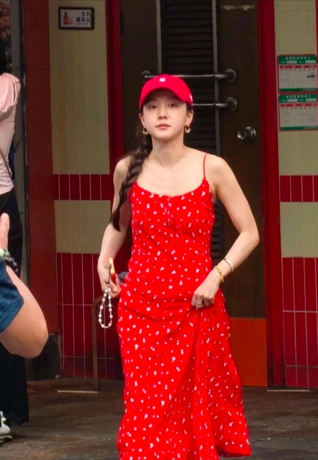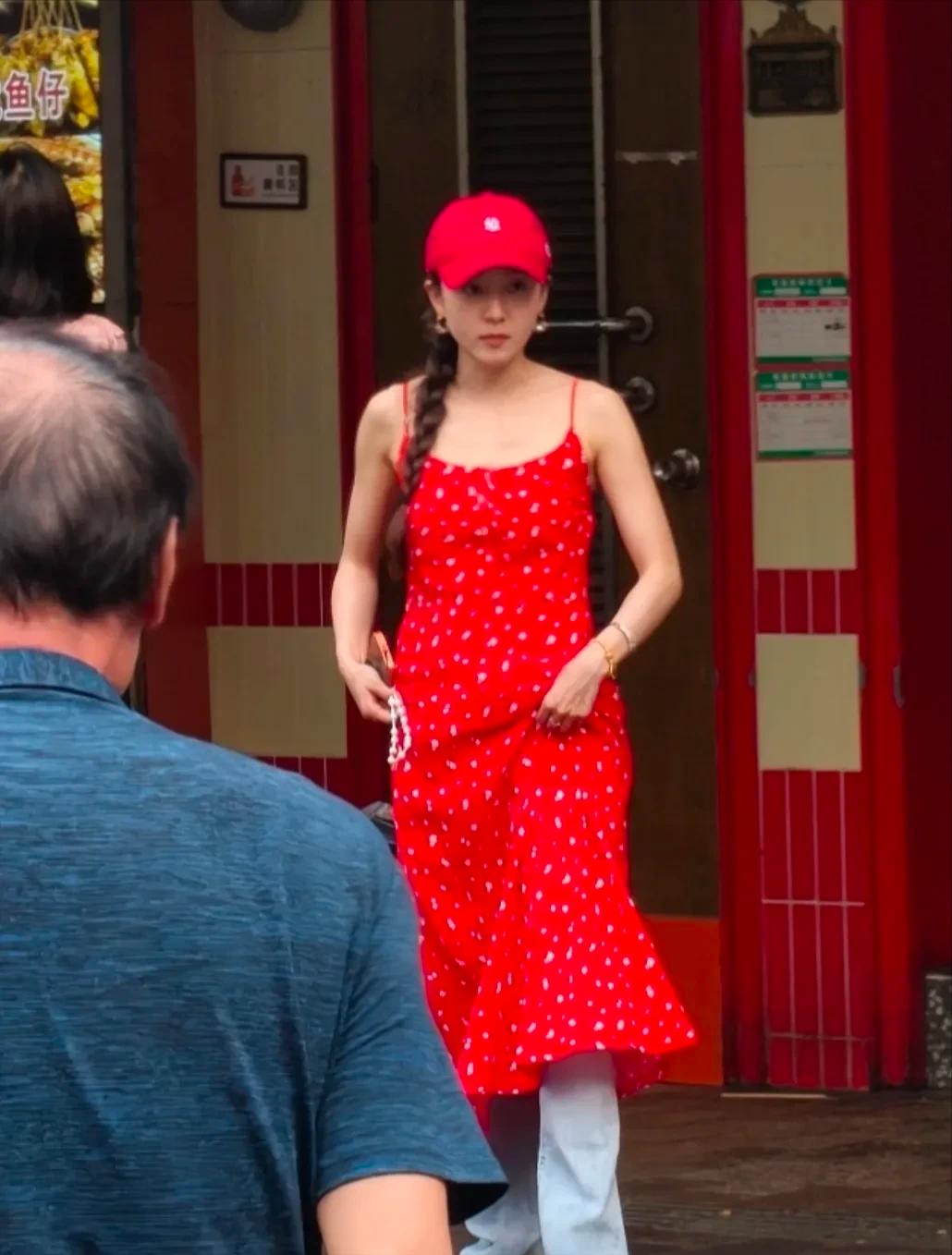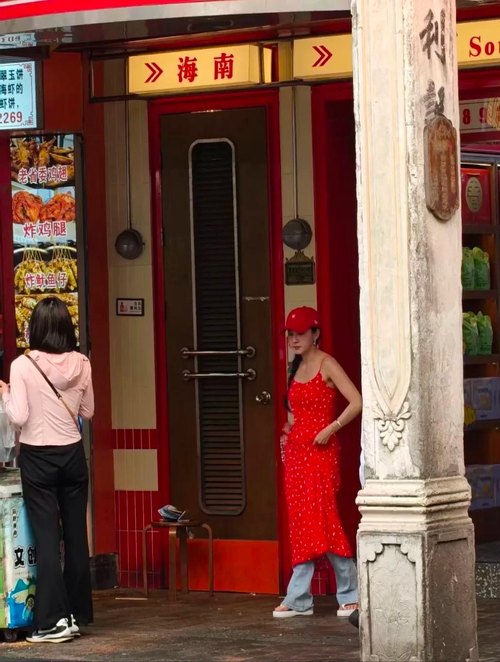 马龙老婆夏露,这眼光全都用在选老公上了吧! 在海口被网友偶遇,一身大牌红色吊带长