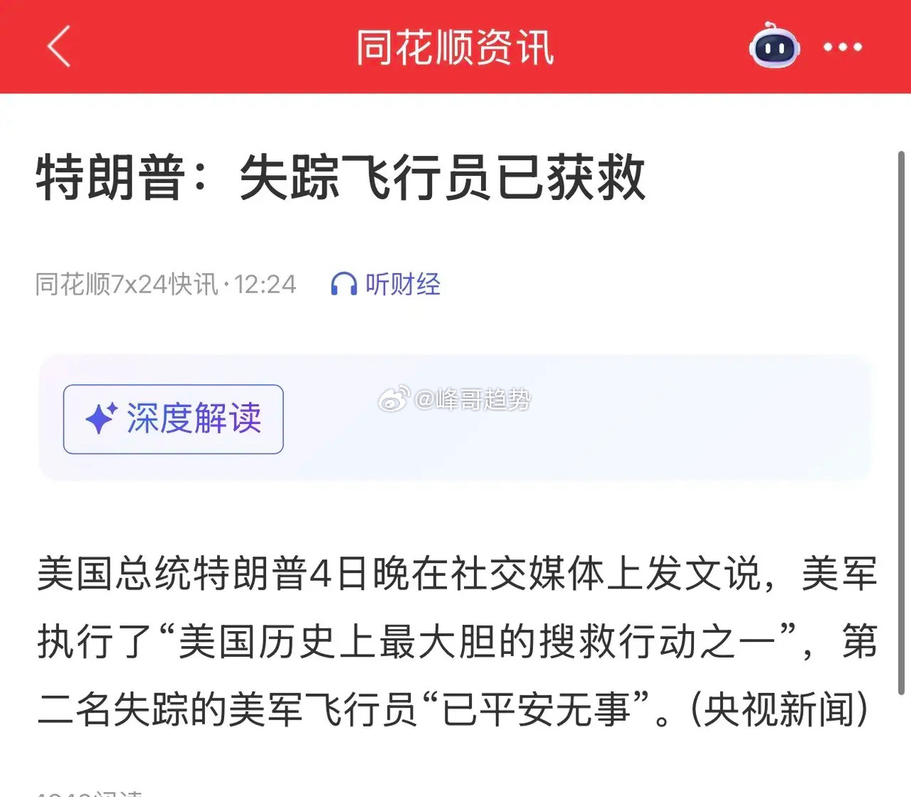 看到这些消息后,大家是相信川普还是朗子?川普发消息称:失踪飞行员已获救;朗子发消