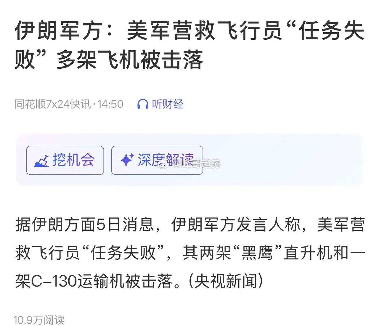 朗子发消息称:美营救飞行员“任务失败”,多架飞机被击落;