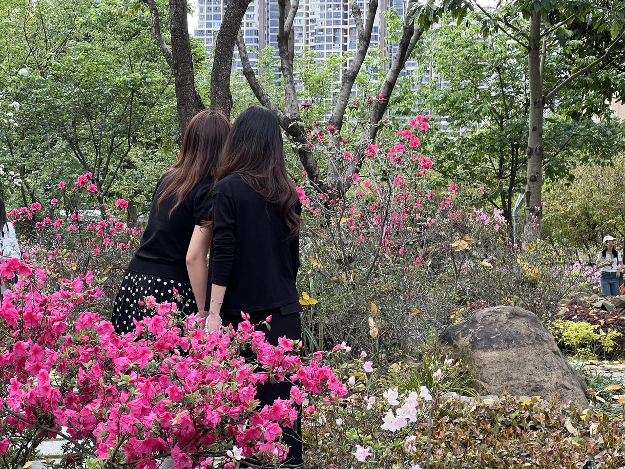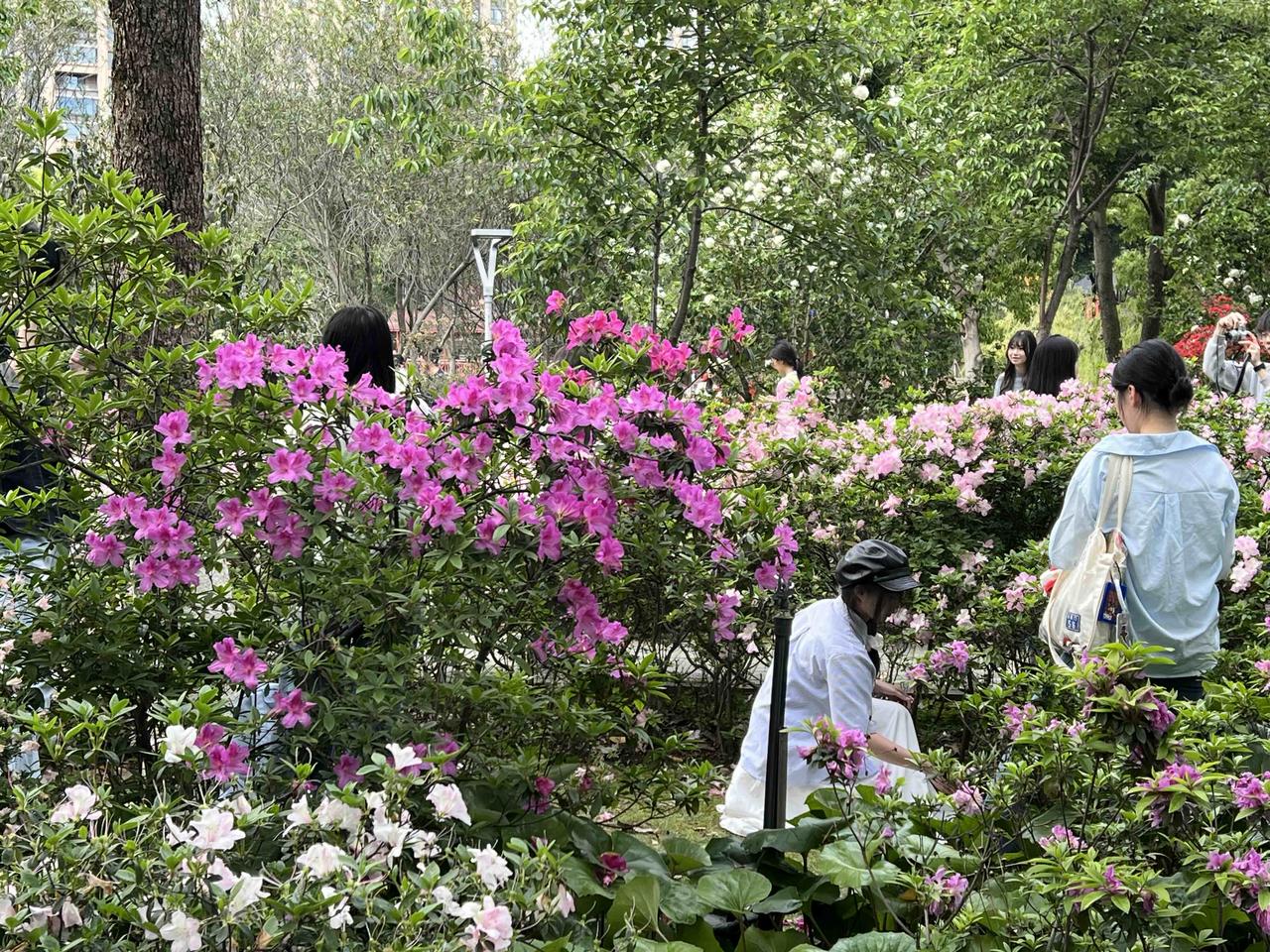 每一丛花旁,都有游人驻足拍照,开得最艳的那几簇,更是引来人们频频驻足。“蜀国曾闻子规鸟,宣城又见杜鹃花。一叫一回肠一断,三春三月忆三巴。”诗人说,杜鹃啼血而开,那殷红的花瓣,是思念凝成的泪,是牵挂刻下的痕。其实,此时的思念,从不是悲戚,而是如杜鹃花的红,淡而绵长,藏在风的呢喃里,藏在花的芬芳中,藏在每一次不经意的回望间……