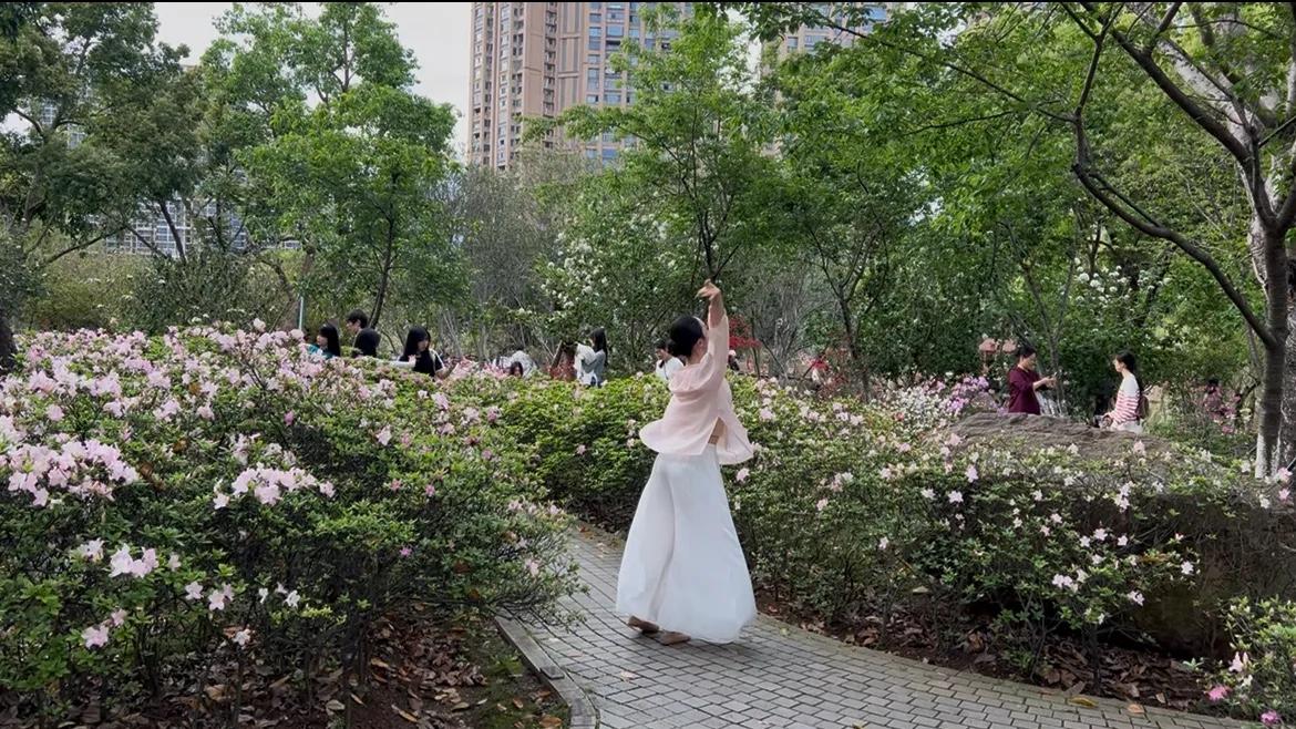 花丛深处,有舞者翩跹而起,舞步轻盈得如踩在云端,又似花瓣随风飘落,没有丝毫的旋律,却与风的轻吟、花的盛放完美契合,每一寸灵动,都藏着与春日的温柔共鸣。