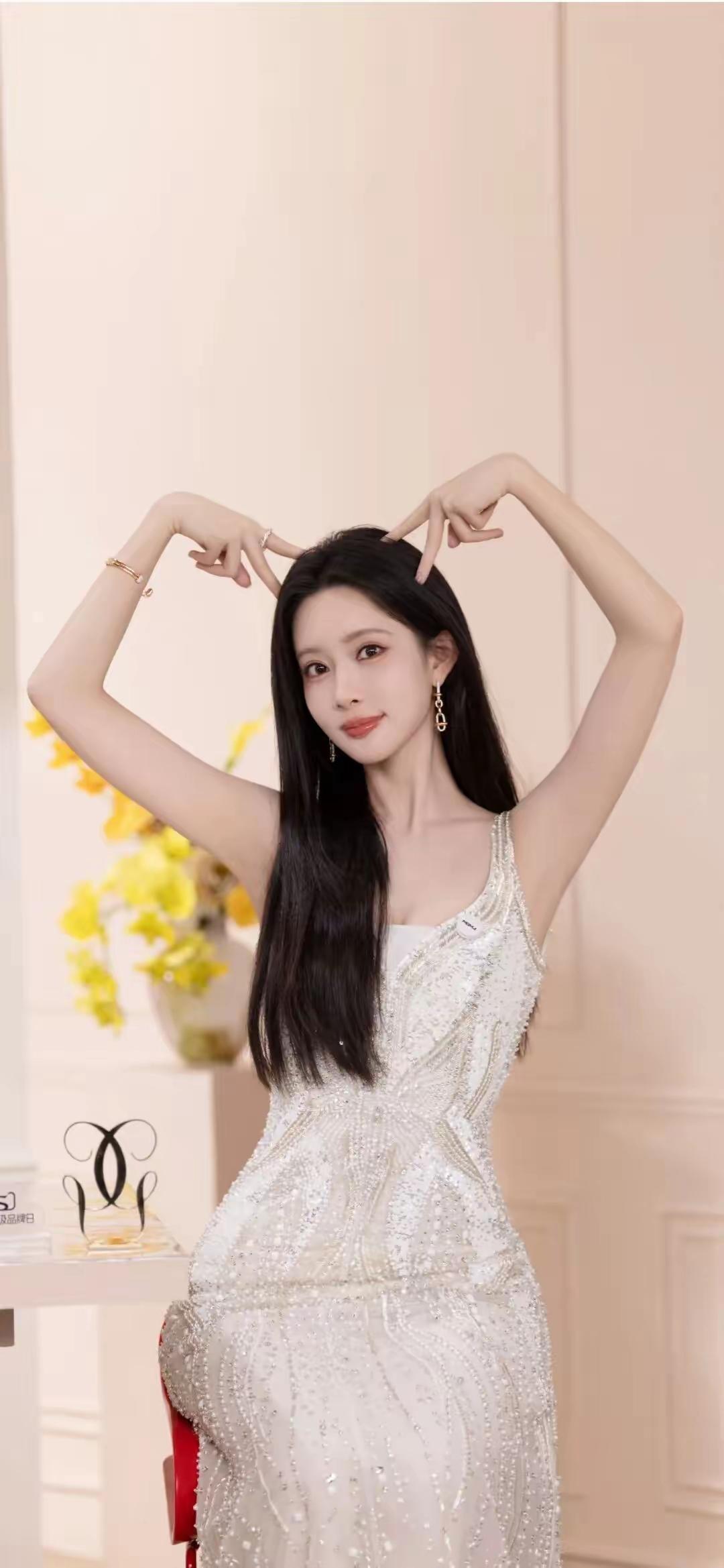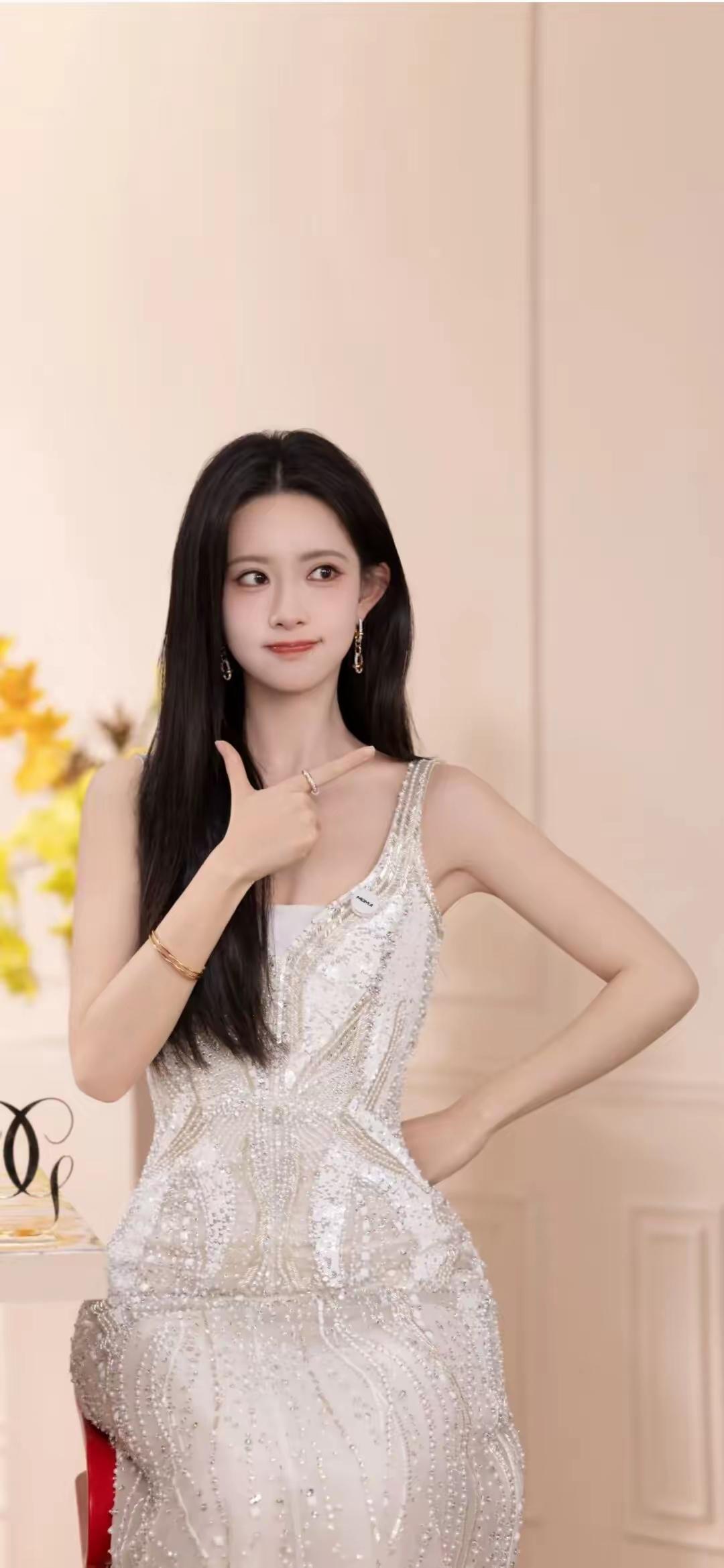 孟子义,银白亮片缀满裙身,如揉碎的星光落满肩头。黑长直发温柔垂落,灵动俏皮的手势里,是藏不住的甜意与鲜活。 温柔与闪耀撞个满怀,每一帧都在发光,是自带氛围感的甜酷公主呀✨