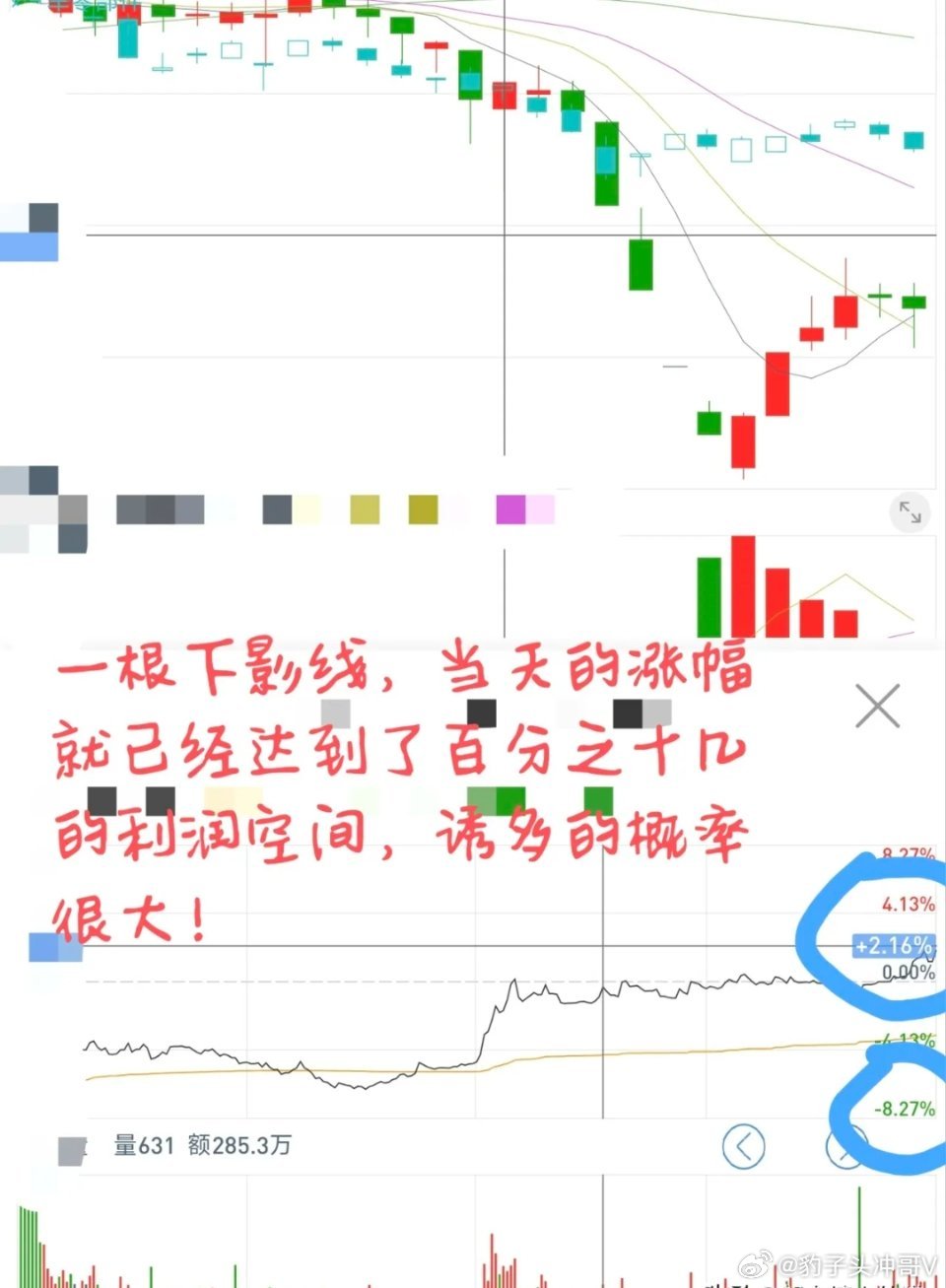 股价上涨的概率相对较小。上涨留下太长的上影线,有可能是主力资金诱多出货的表现,也有可能是主力资金释放抛压的主动试盘举措,核心的区别就在于是否放量。下跌或者上涨留下长的下影线,就会导致当天的获利空间增加,尤其是带有长长的下影线,有的下影线可能已经超过了百分之十,请问第二天这百分之十的利润怎么消耗,尤其是在没有情绪加持的行情中。因此,在实战中,需要回避长长的下影线,关注带有上影线缩量的股票。