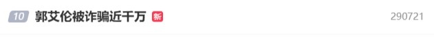 此事件迅速引发热议,“郭艾伦被诈骗近千万”词条已登上微博热搜,目前暂列第10位。