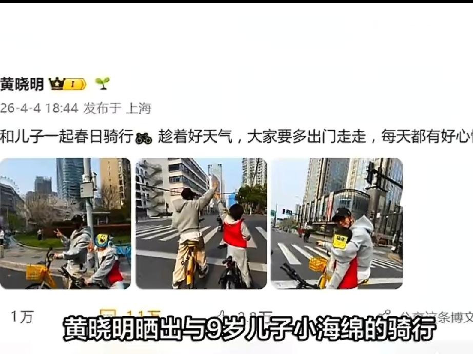 黄晓明带9岁儿子骑车而道歉,并主动去交警部门接受处罚。 4月4号,黄晓明在上海街头晒了和9岁儿子小海绵的骑行合照,父子俩击掌比耶,看起来温馨又有爱。结果刚发出来,网友直接炸锅了:这根本不是晒娃,是违法! 因为根据《道路交通安全法实施条例》,驾驶自行车必须年满12周岁!9岁的孩子根本不能骑车上路,而且父子俩全程没戴头盔,还在马路中间停车拍照,这安全隐患也太大了。 大家都觉得,黄晓明作为公众人物,连最基本的交通法规都不懂,还带头违规,太不应该了。 没想到,黄晓明的反应直接让网友态度反转了。4月5号,他直接发长文道歉,态度特别诚恳,说自己深感愧疚,作为父亲没能以身作则,忽略了法规。还说已经去了交警部门接受处罚,考虑到现在是假期时间,等节后他会正式接受处罚和教育,并且呼吁所有家长:孩子会骑车不等于能上路! 有人说:“知错就改,不甩锅不找借口,这才是公众人物该有的样子!”还有很多家长说,之前根本不知道12周岁才能骑车上路,这次真的被科普到了。 当然也有不同声音,有人觉得明星就该更严格,毕竟容易被模仿。但不得不说,这次黄晓明的处理,真的给很多家长上了一课。 其实很多家长都有误区,觉得孩子会骑车就能上路,根本没把年龄限制当回事。这次事件也给所有人提了个醒:交通安全无小事,法规底线不能碰,尤其是给孩子做榜样的时候,更不能马虎。黄晓明演技派 黄晓明自拍 黄晓明 明星 交规