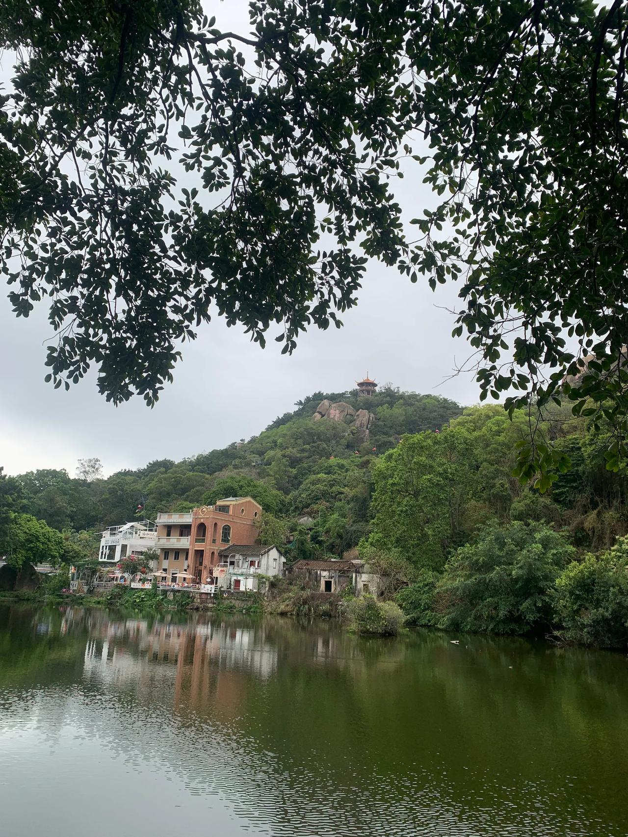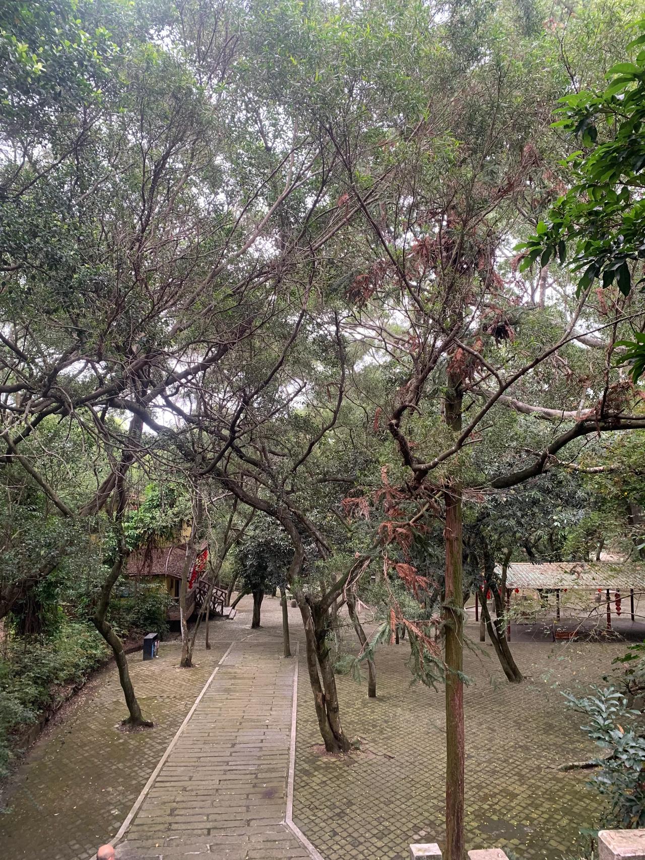 雨雾朦胧中,我们摸索着找到织梦亭,站在亭边俯瞰下方的玉潭,雨水让潭水泛起层层涟漪,远处的汕头城景在雨雾中若隐若现。这场突如其来的迷路,反而让这次旅行变得格外特别——没有打卡点的拥挤,没有刻意的安排,只有自然的惊喜与内心的平静。