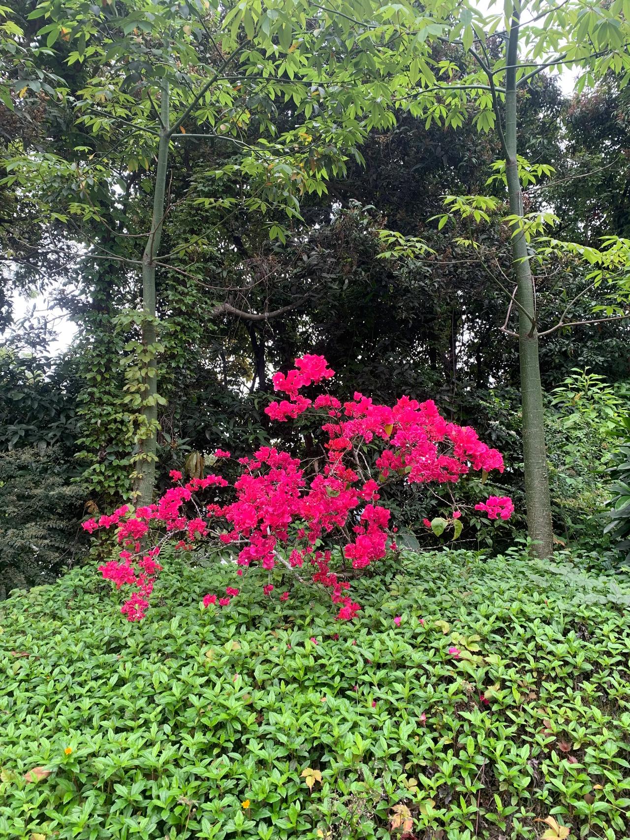 本想着慢悠悠逛到山顶看风景,没想到下午四点左右,天空突然飘起小雨。细密的雨丝落在树叶上,溅起细碎的水花,山路瞬间变得湿滑。更巧的是,我们竟在林间迷了路,原本的悠闲变成了一场小小的“丛林探险”。雨水打湿了裤脚,却也让周围的绿意更显鲜活,原本冷清的山谷,此刻倒多了几分野趣与浪漫。